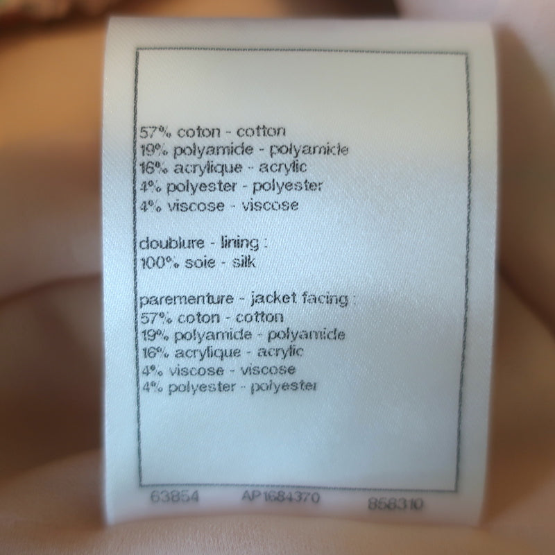 Chanel CC Embroidered Lace-Trim Sequined Tweed Jacket Cream Size 42