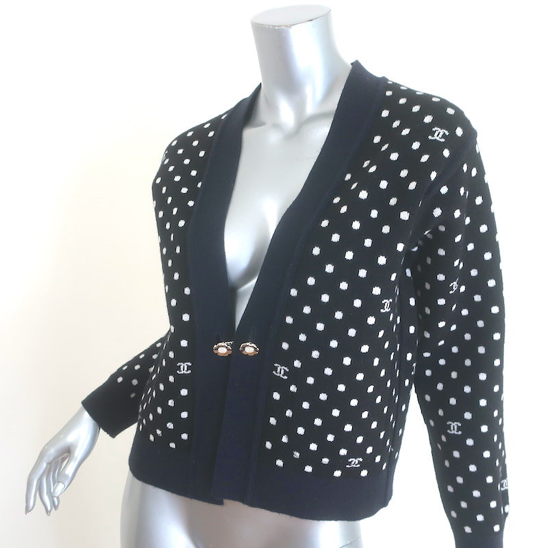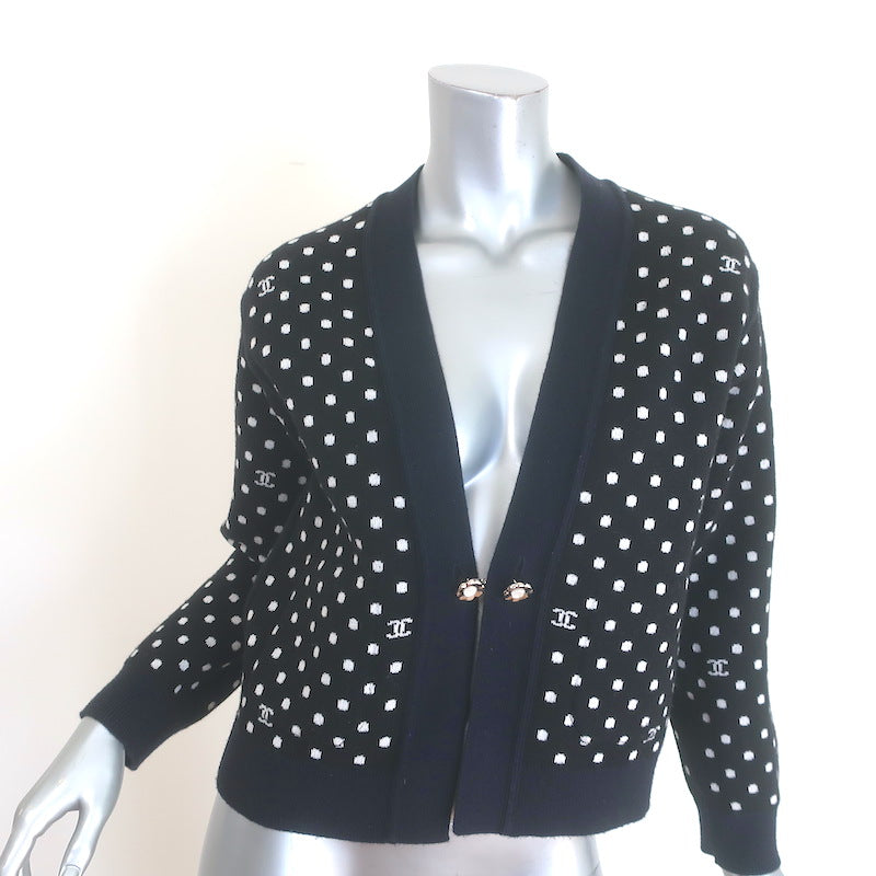 Chanel 24P Cashmere Reversible Cardigan & Wide Leg Pants Set Black/Navy Size 36