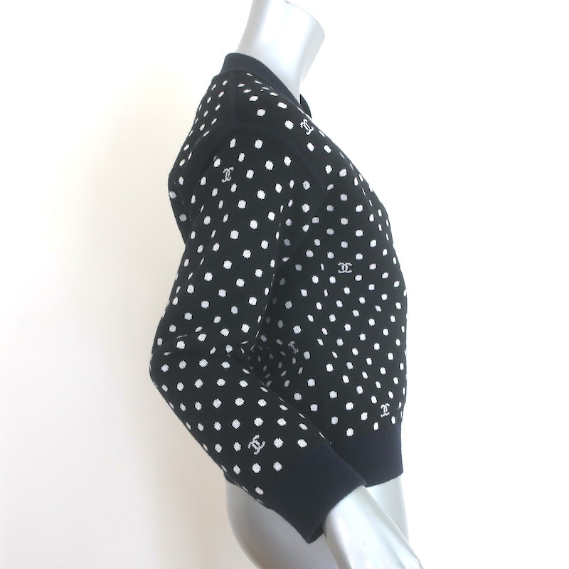 Chanel 20P Intarsia Knit Short Sleeve Long Cardigan Black Cotton-Hemp ...