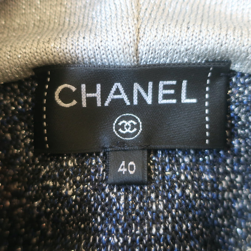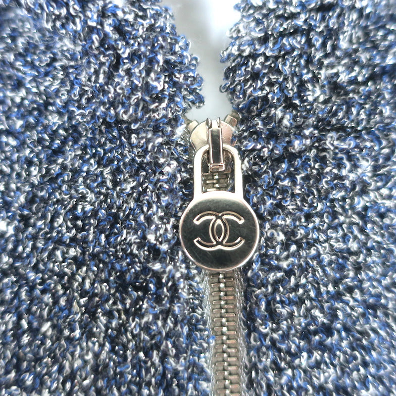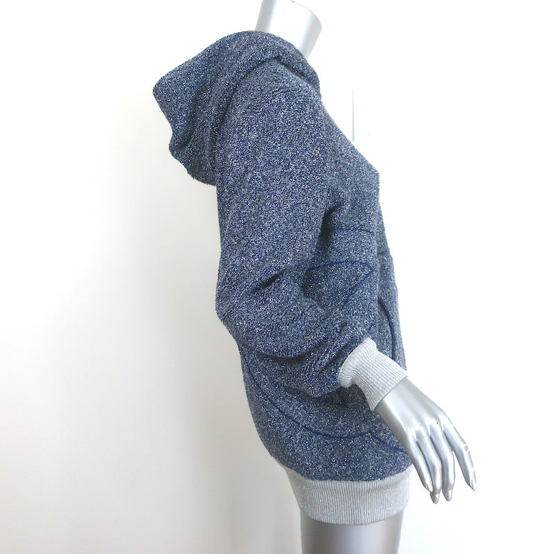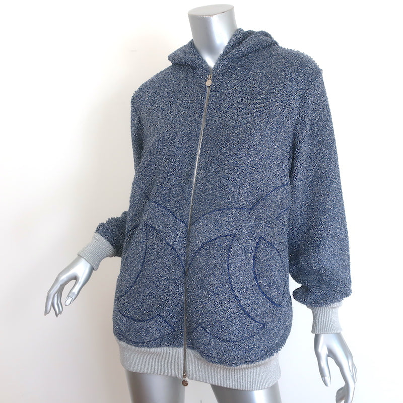 Chanel Interlocking CC Metallic Terry Zip-Up Hoodie Blue/Silver Size 40