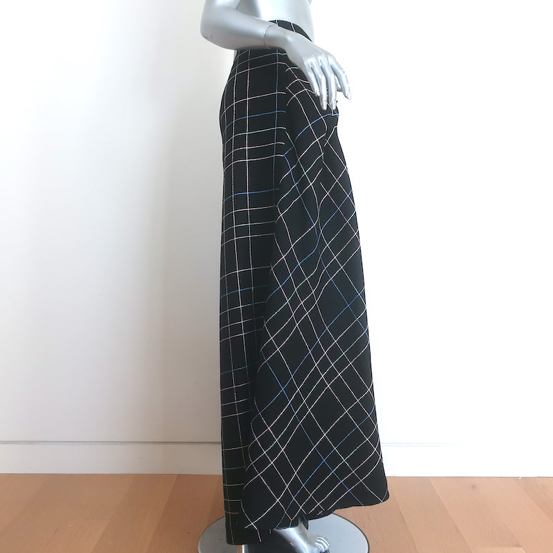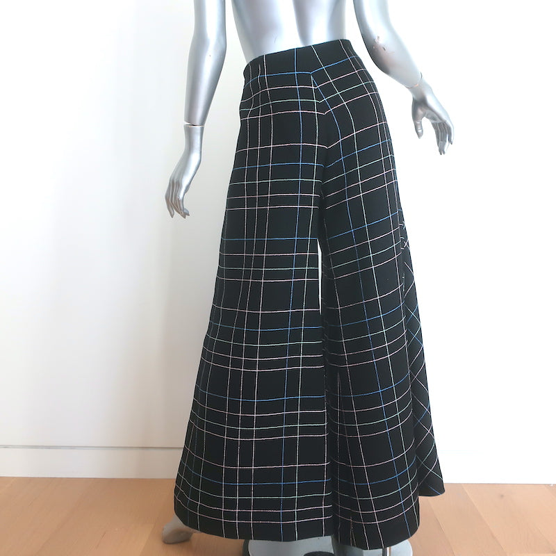 Chanel Windowpane Check Ultra Wide Leg Draped Pants Black Wool-Blend Size 42