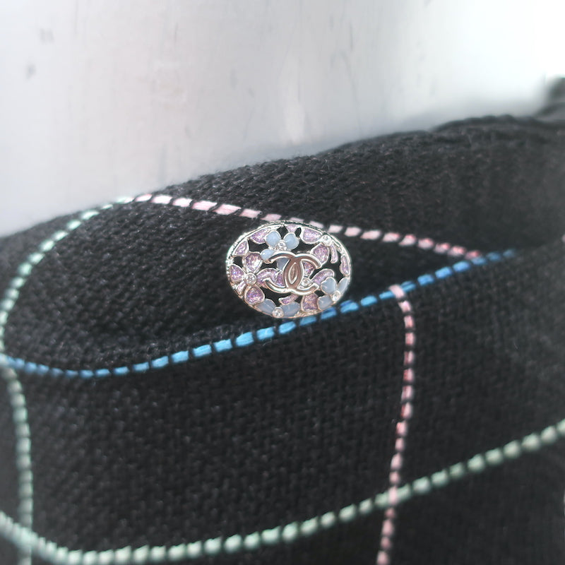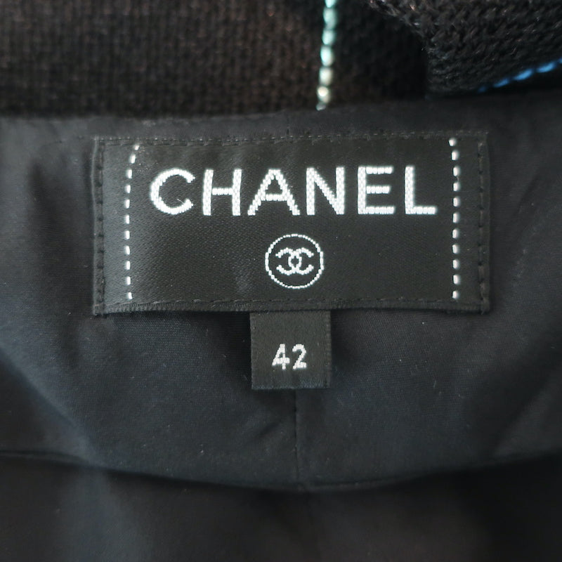 Chanel 21C Open-Knit Button Front Mini Dress Black Cotton Blend Size 42