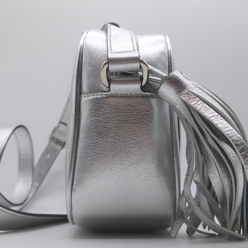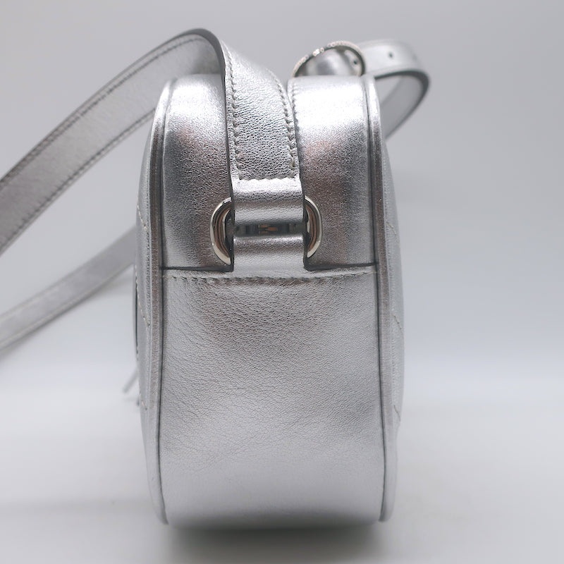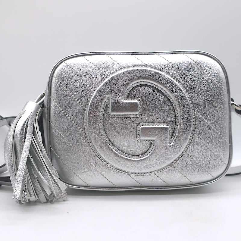 Gucci Blondie Interlocking G Small Crossbody Bag Silver Metallic Leather