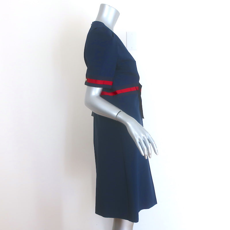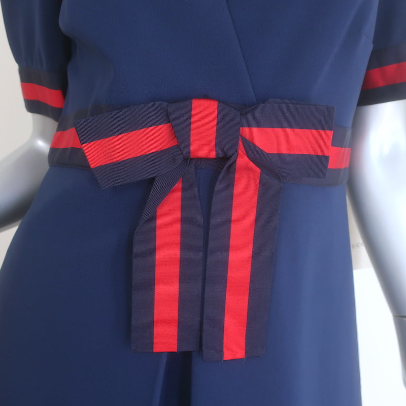 Gucci Web Bow Puff Sleeve Dress Royal Blue Stretch Jersey Size Extra Large NEW