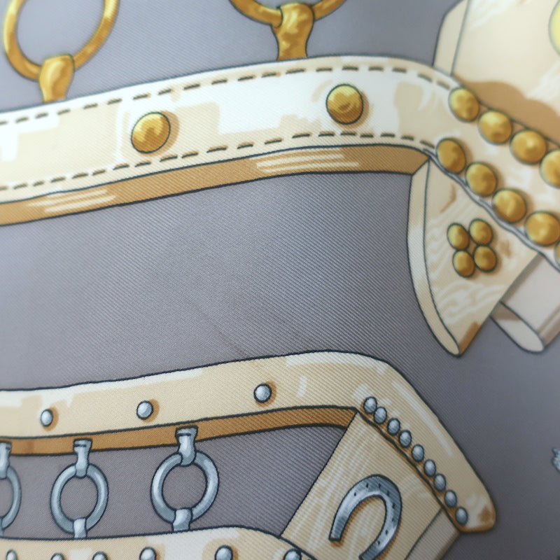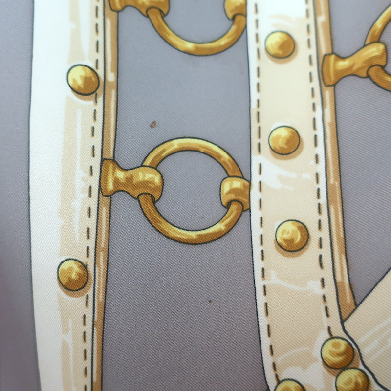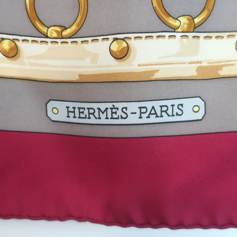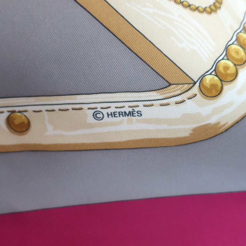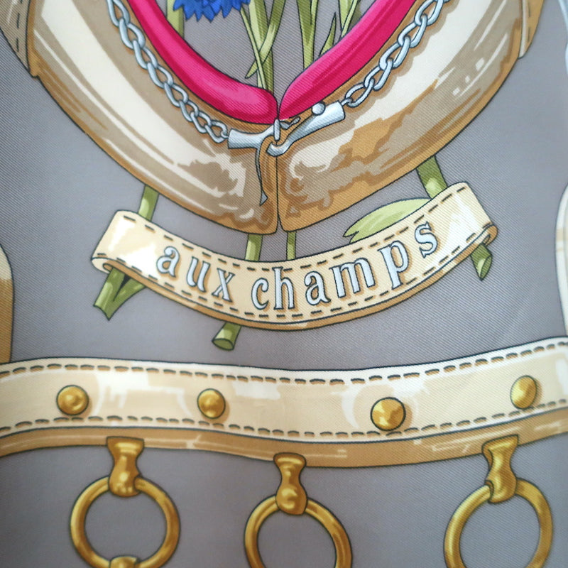 Vintage Hermes 1970 Aux Champs by Caty Latham 90cm Scarf Gray/Raspberry Silk Twill