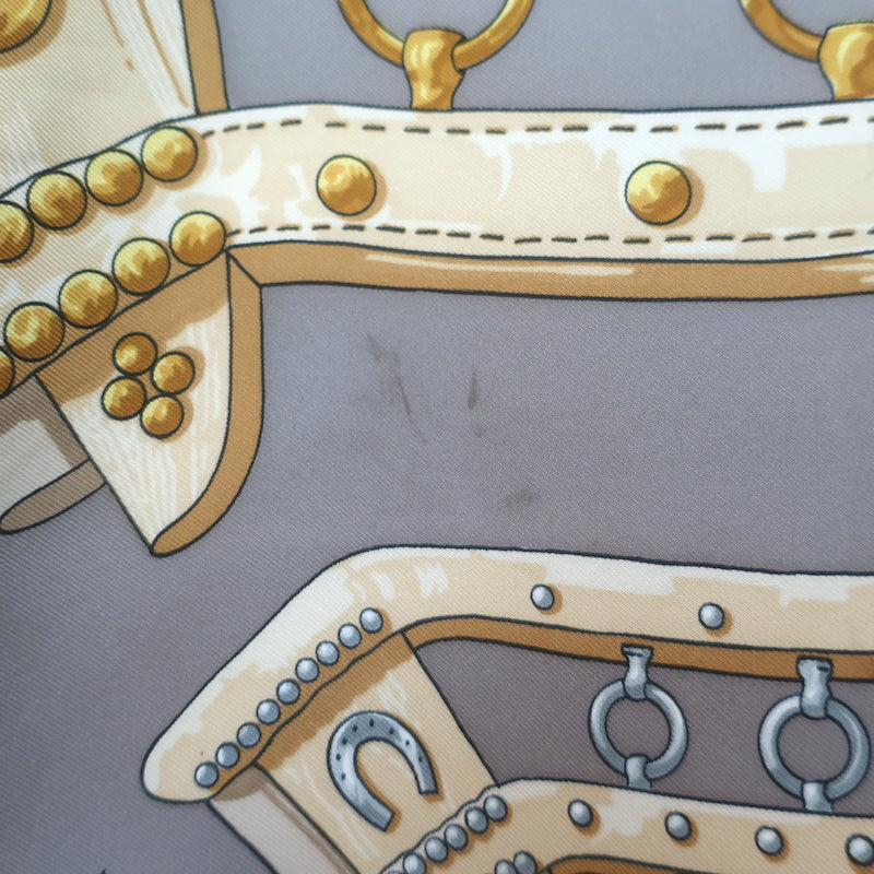 Pre-loved. A few faint smudges throughout scarf may come out with cleaning. Does NOT come with box.