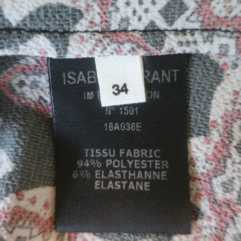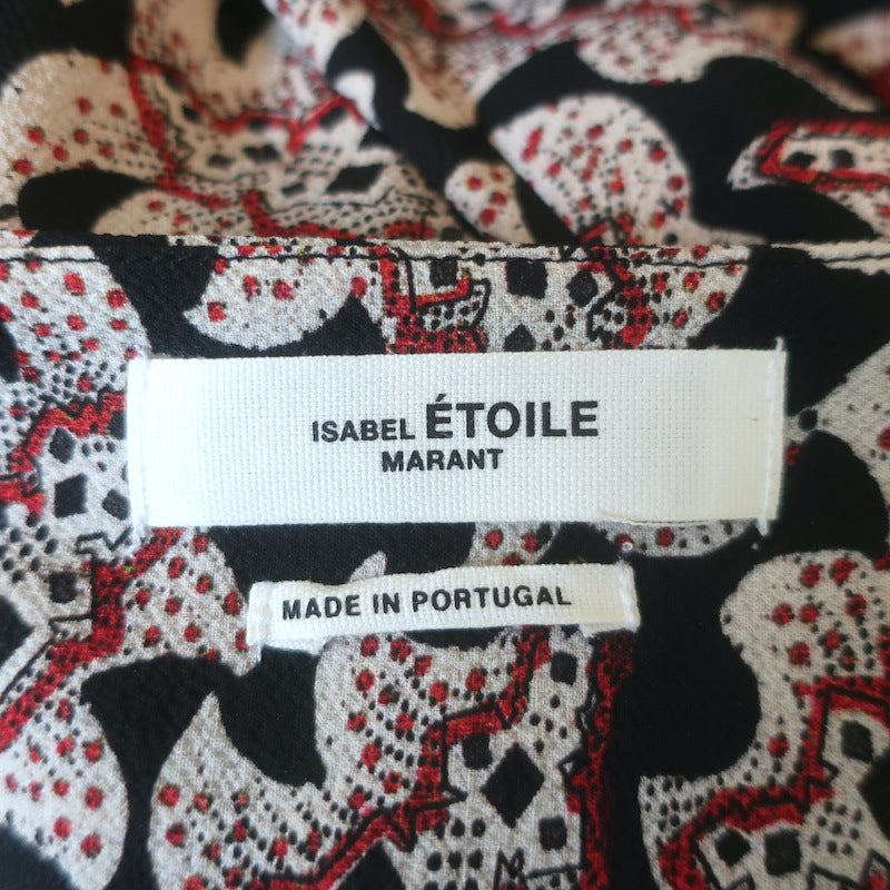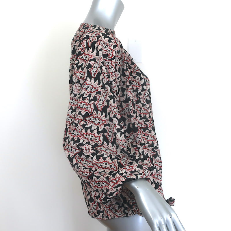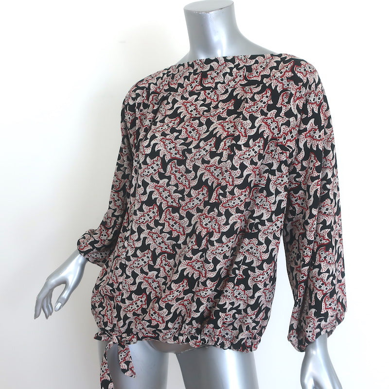 Isabel Marant Etoile Leland Tie-Hem Blouse Black/Beige Printed Crepe Size 34