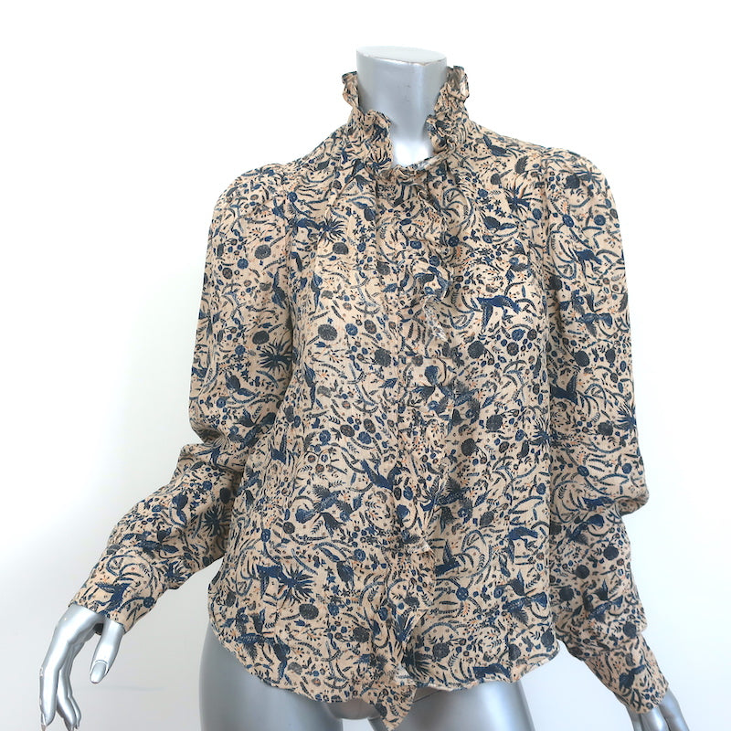 Isabel Marant Etoile Ruffled Button Down Shirt Beige Printed Linen Size 38