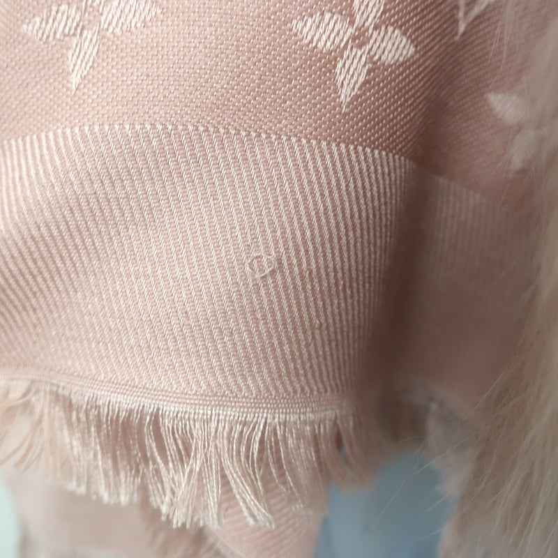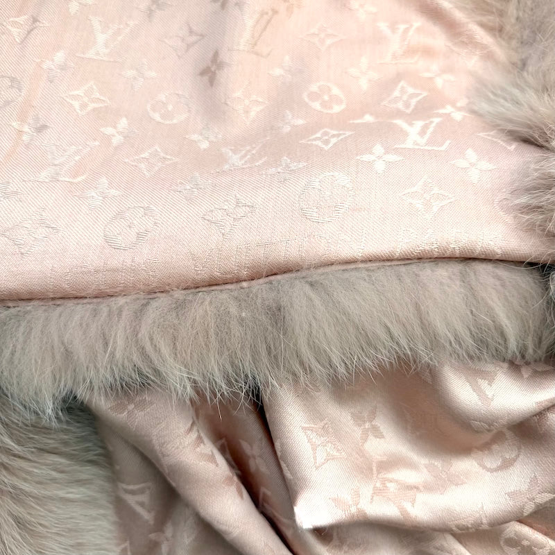 Louis Vuitton Fox Fur-Trimmed Monogram Shawl Blush Pink Silk-Wool