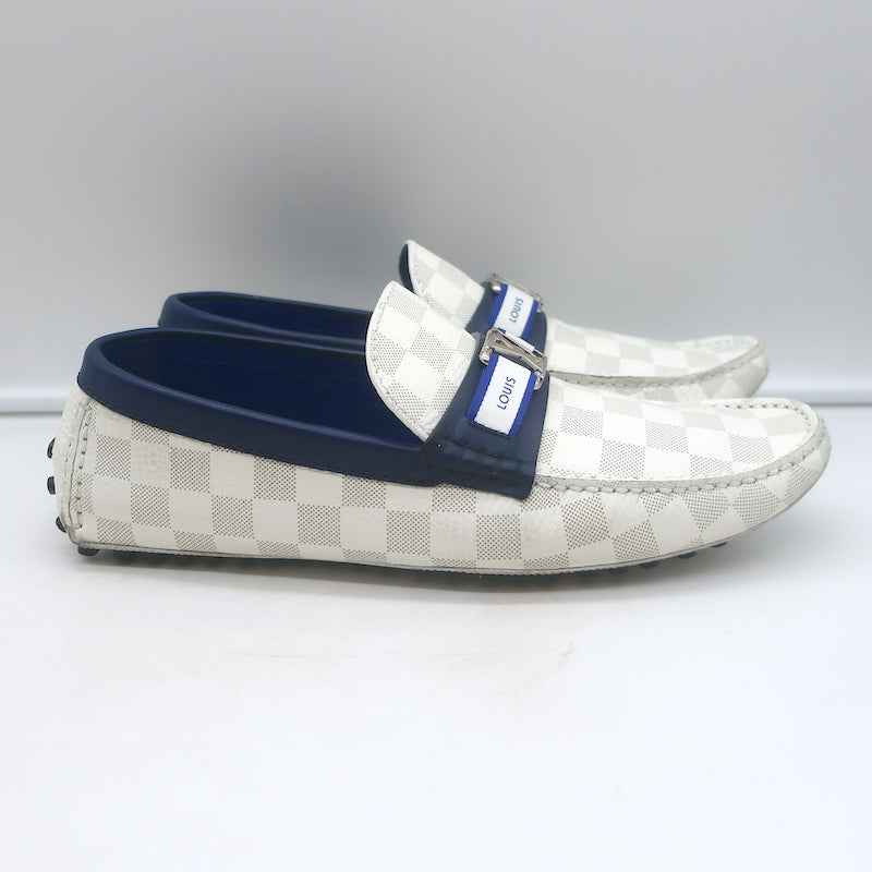 Louis Vuitton Hockenheim Moccasins White Damier Canvas Size 7.5 Driving Loafers
