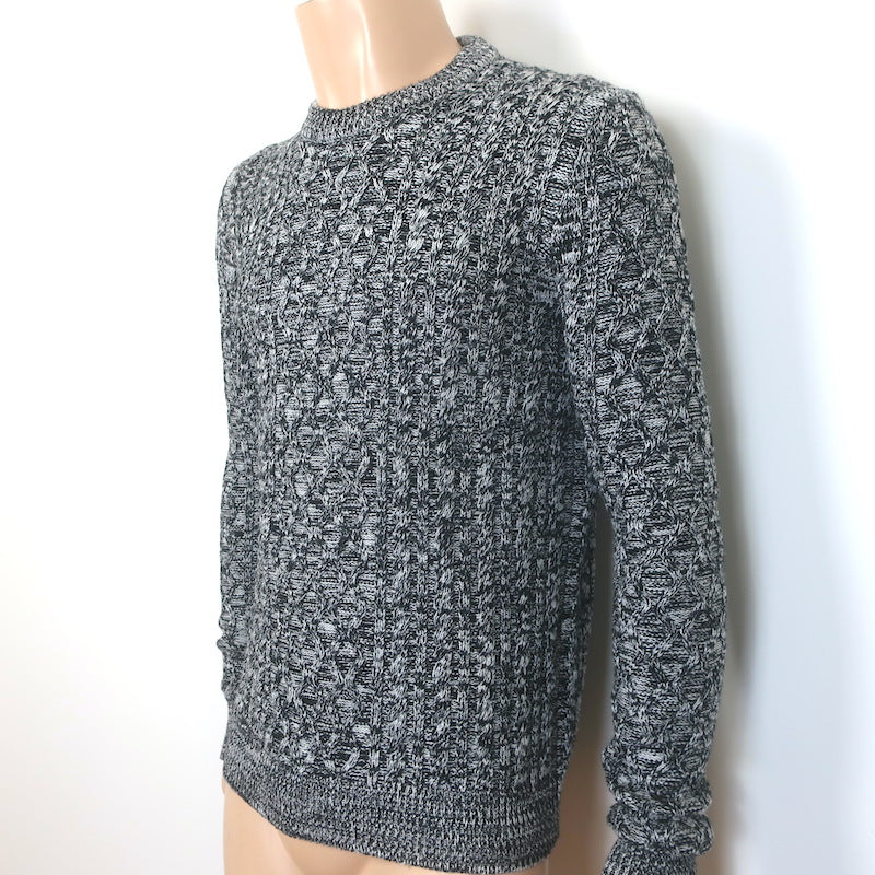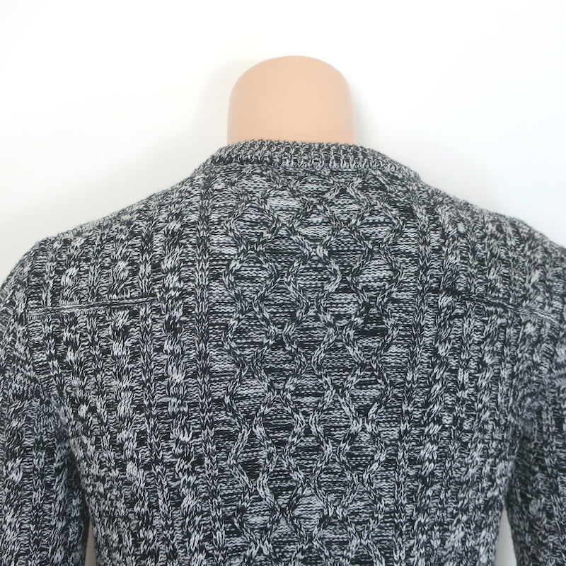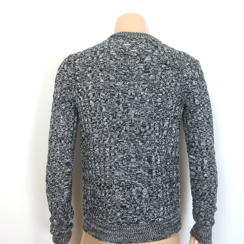 Dior Homme Marled Cable Knit Crewneck Sweater Black/White Wool Size Medium