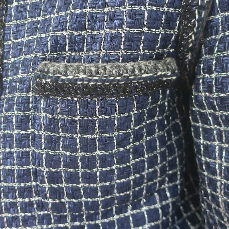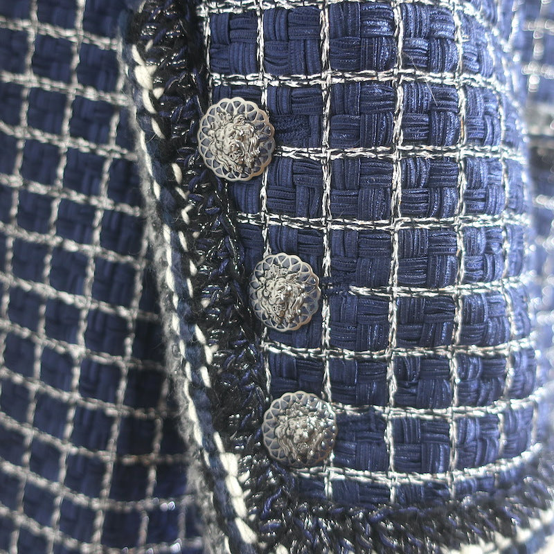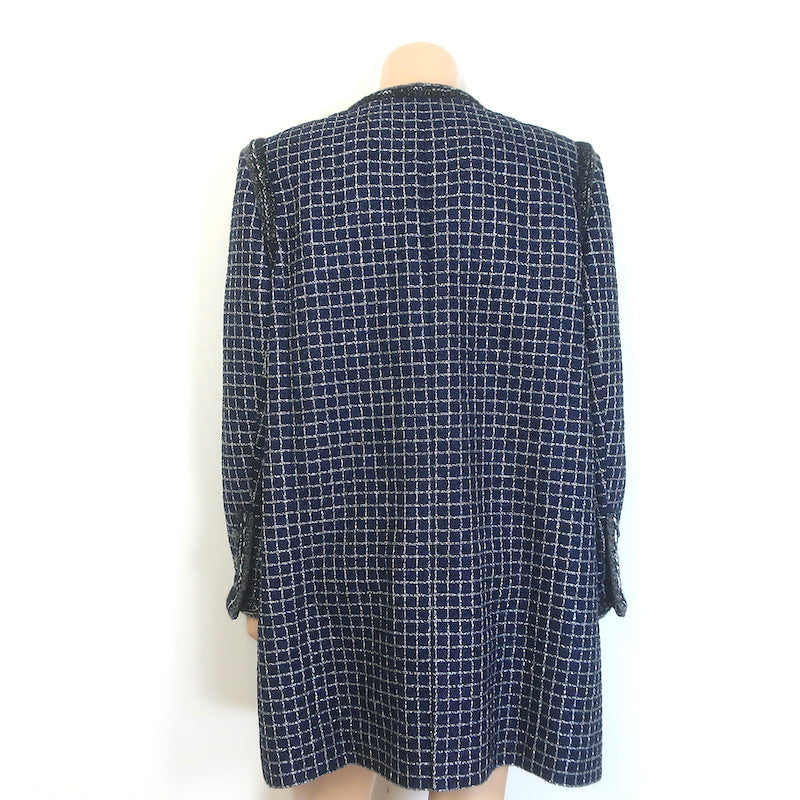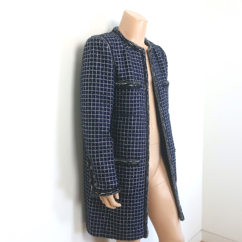 Chanel 17A Cosmopolite Fantasy Tweed Coat Navy/Silver Cotton-Blend Size 54 NEW