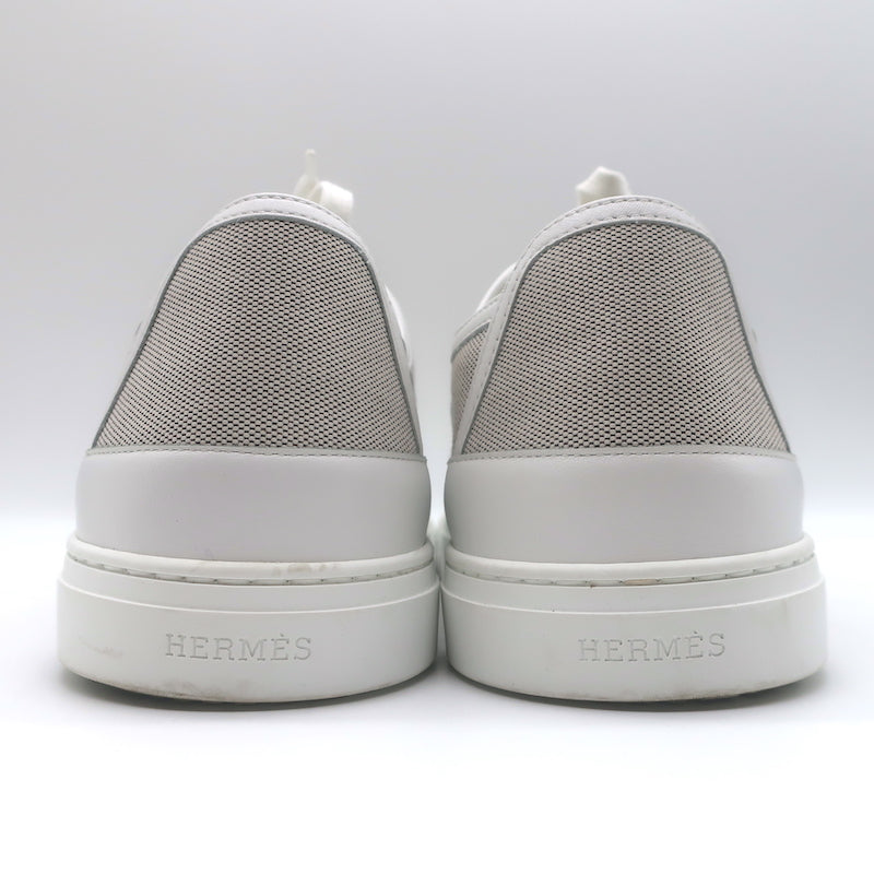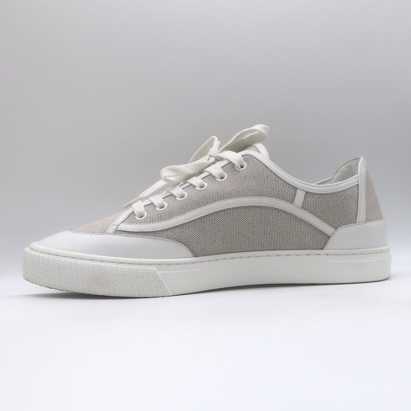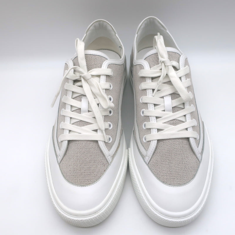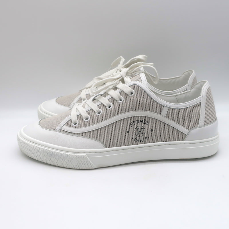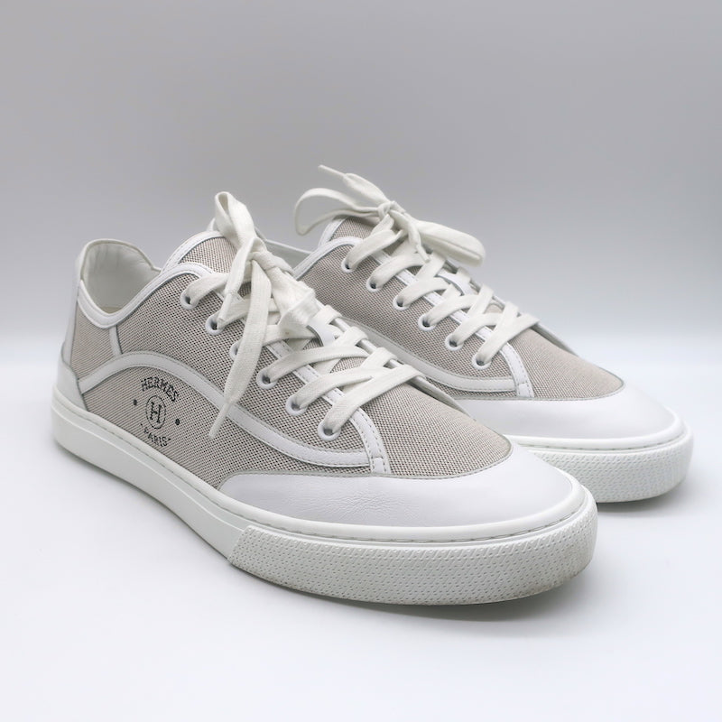 Hermes Get Low Top Sneakers Beige Canvas & White Leather Size 43.5