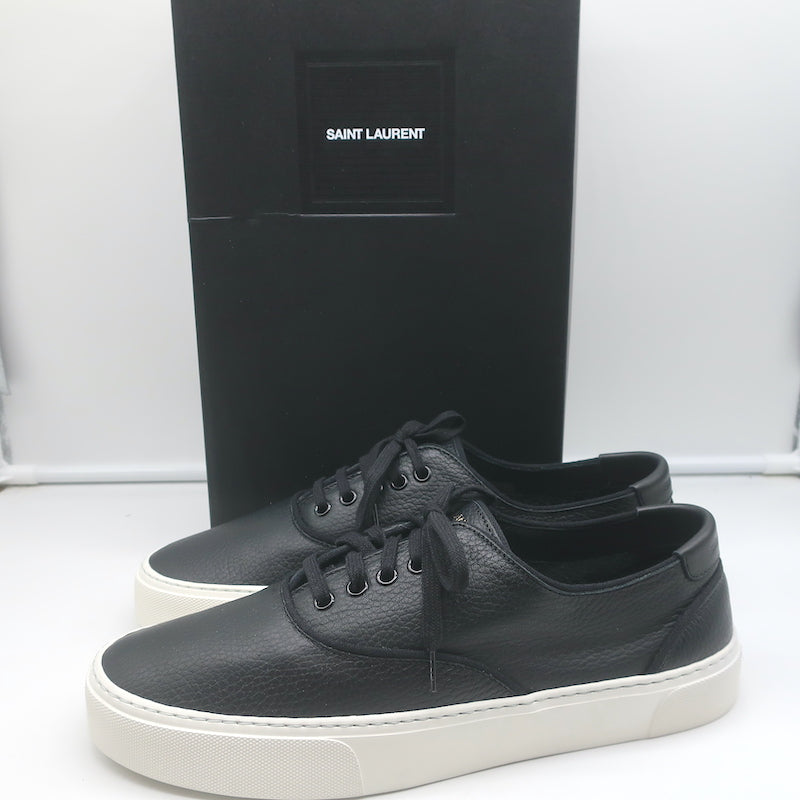 Saint Laurent Venice Low Top Sneakers Black Grained Leather Size 43.5 NEW