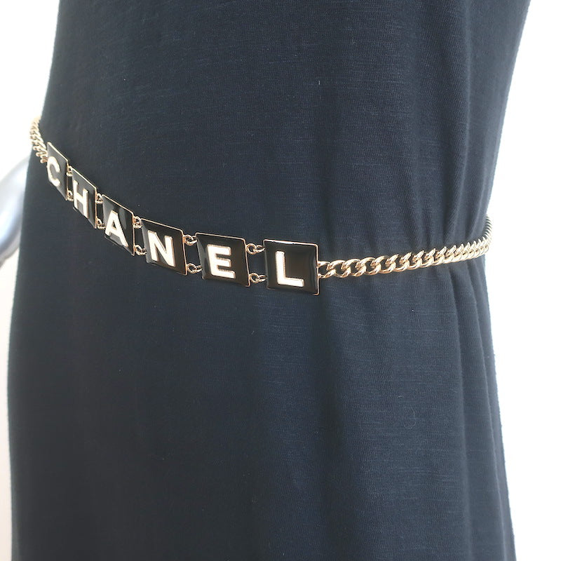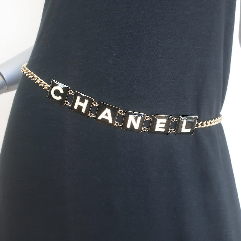 Chanel B22 Enamel Logo CC Chain Belt Gold/Black 35"