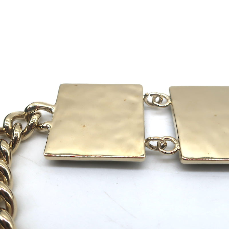 Vintage Chanel Quilted Logo Plate Double Chain Coin Belt Gold