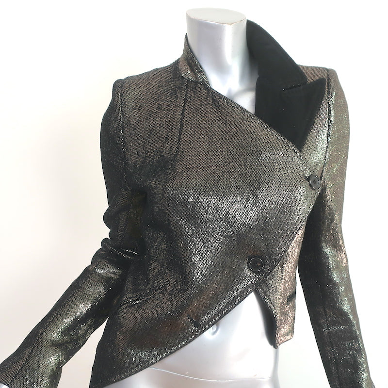 Ann Demeulemeester Asymmetric Jacket Gold Metallic Linen-Blend Size 38