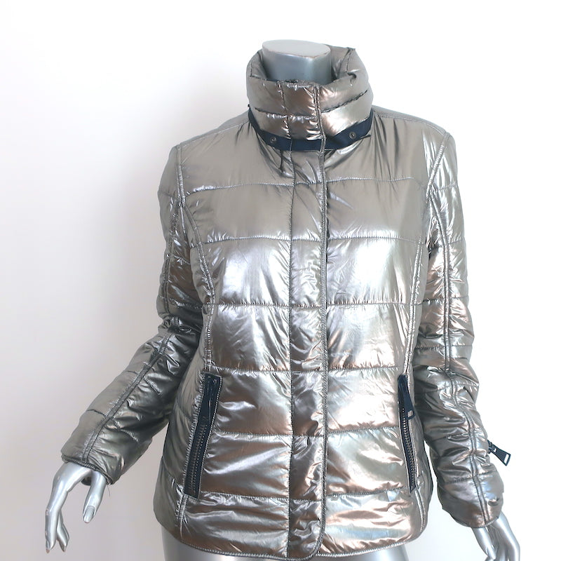 Authier Sestriere Metallic Puffer Jacket Silver Size 46