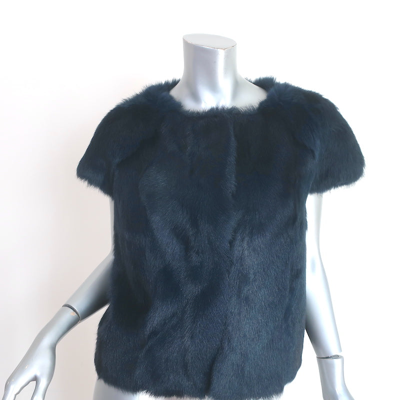 Barneys New York Rabbit Fur Short Sleeve Jacket Very Dark Navy Size Medium