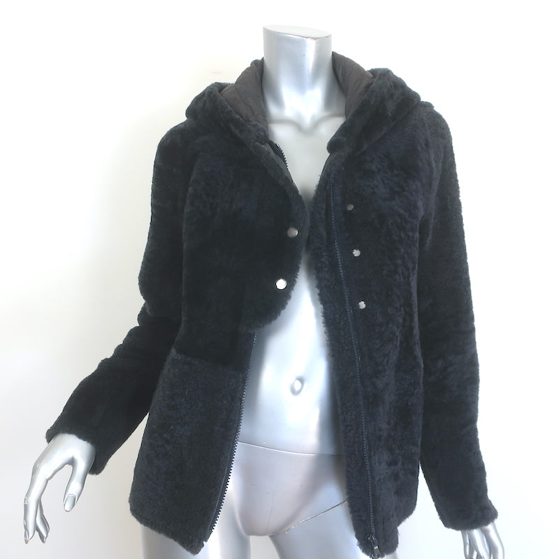 Brunello Cucinelli Shearling Hooded Jacket Black Size 42