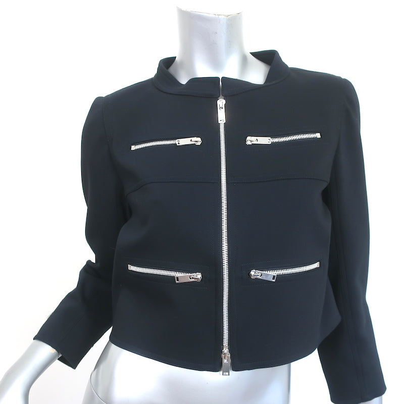 Courreges Multi-Zipper Cropped Jacket Black Stretch Cotton Size 6