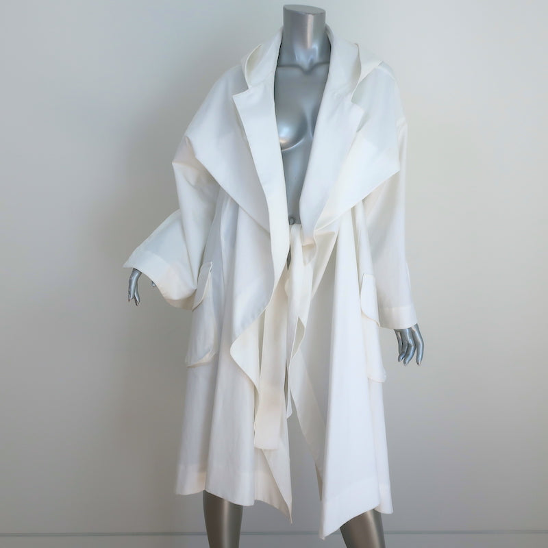 Moon Young Hee Tie-Front Hooded Coat White Draped Cotton Size 38