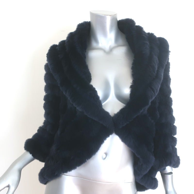 Neiman Marcus Cashmere & Rabbit Fur Draped Cape Jacket Navy Size Large
