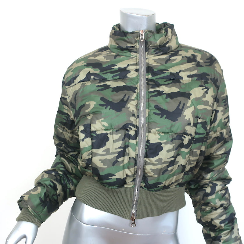 NSF Puffer Jacket Green Camo Print Size Small Cropped Bomber