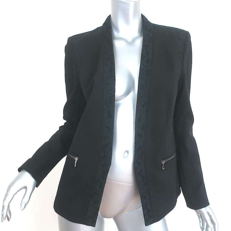Rebecca Taylor Blazer Black Lace-Trim Twill Size 8 Open Front Jacket