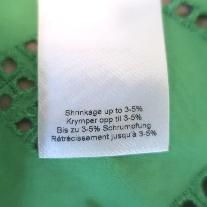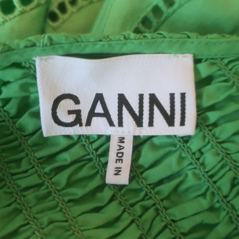 GANNI Broderie Anglaise Puff Sleeve Midi Dress Green Smocked Poplin Size 38