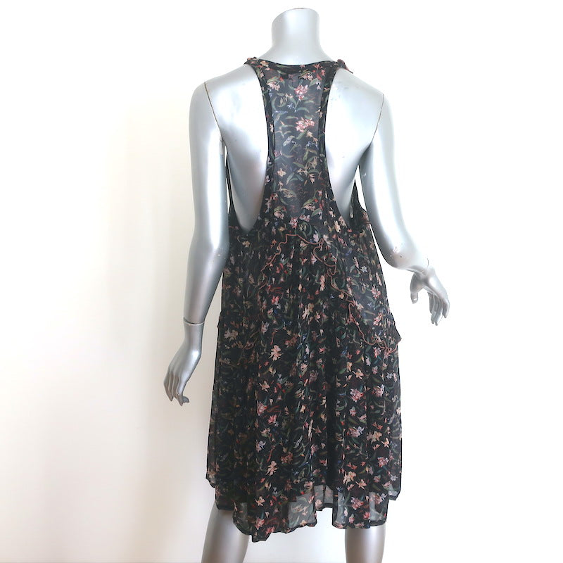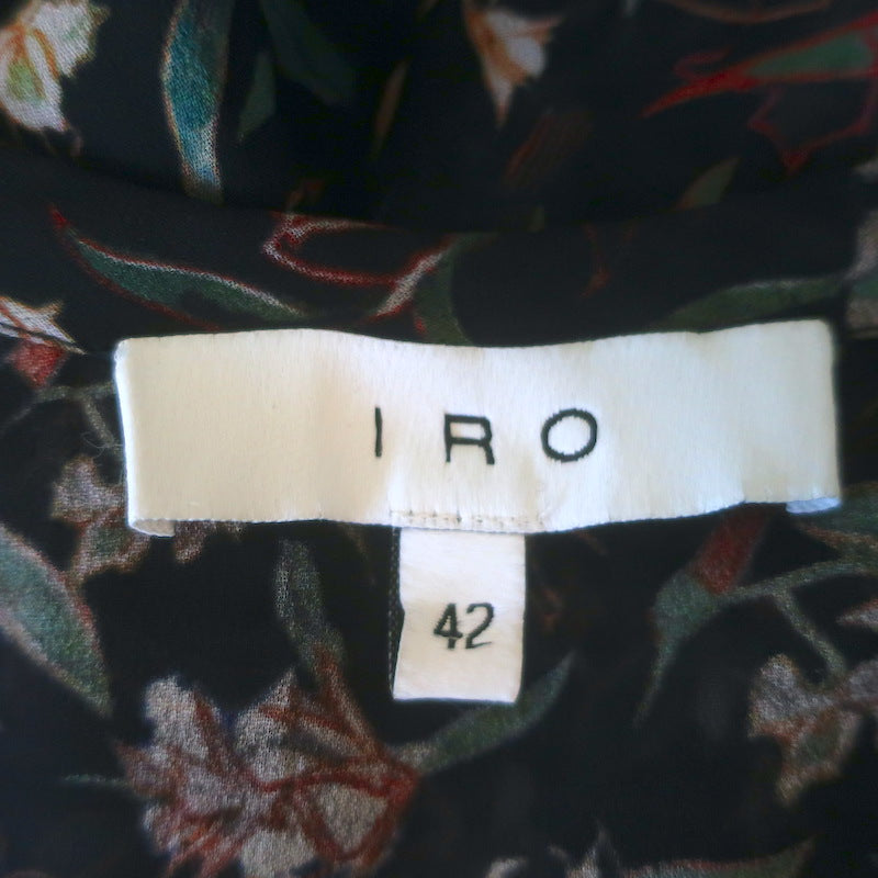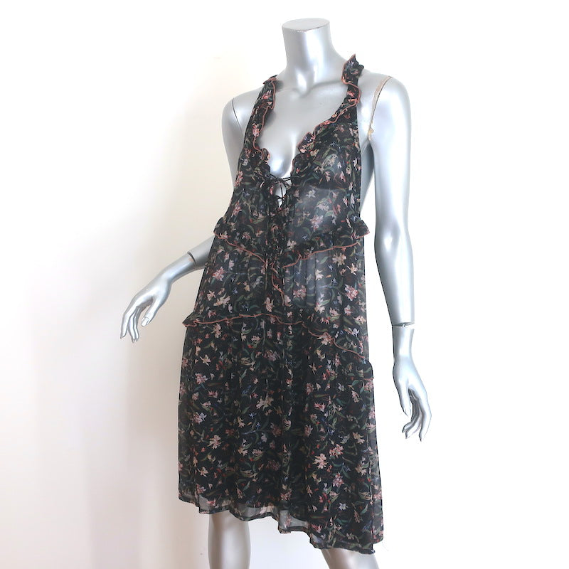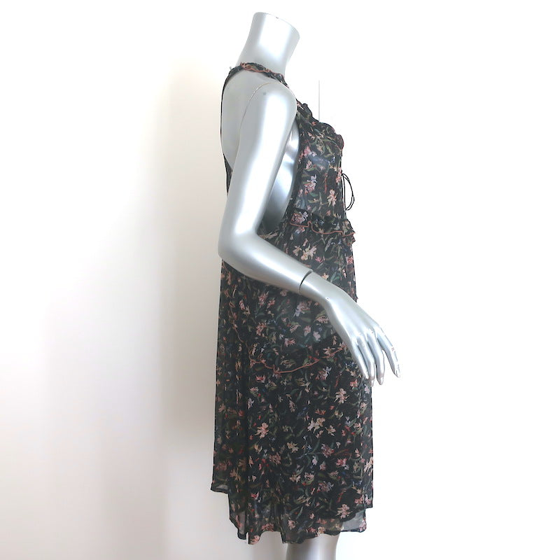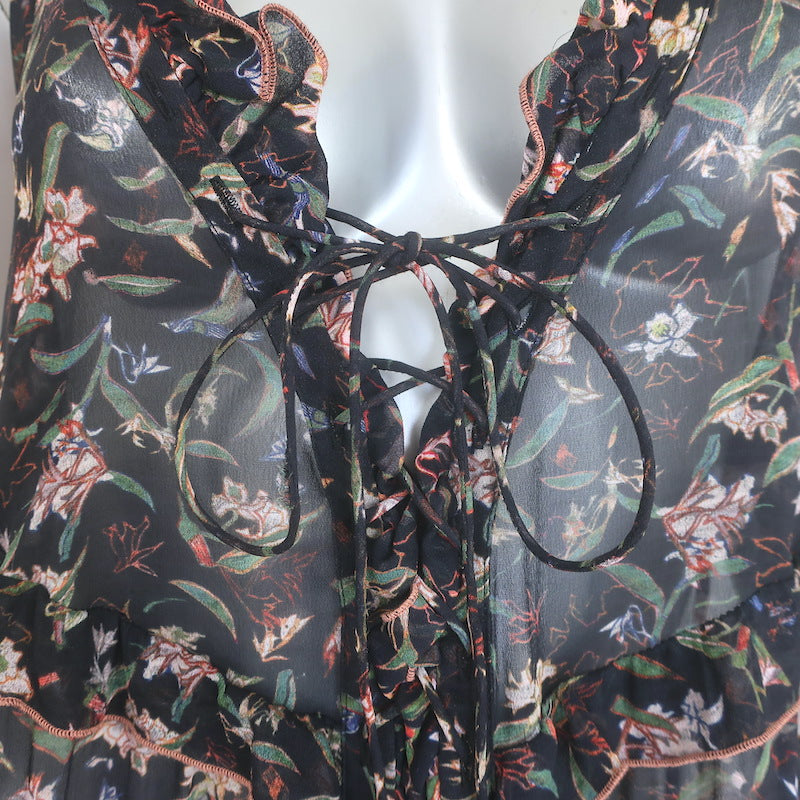 IRO Baden Ruffled Lace-Up Mini Dress Black Floral Print Crepe Size 42