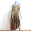 Milly Irene Pleated Metallic Asymmetric Midi Dress Gold Size 0 NEW