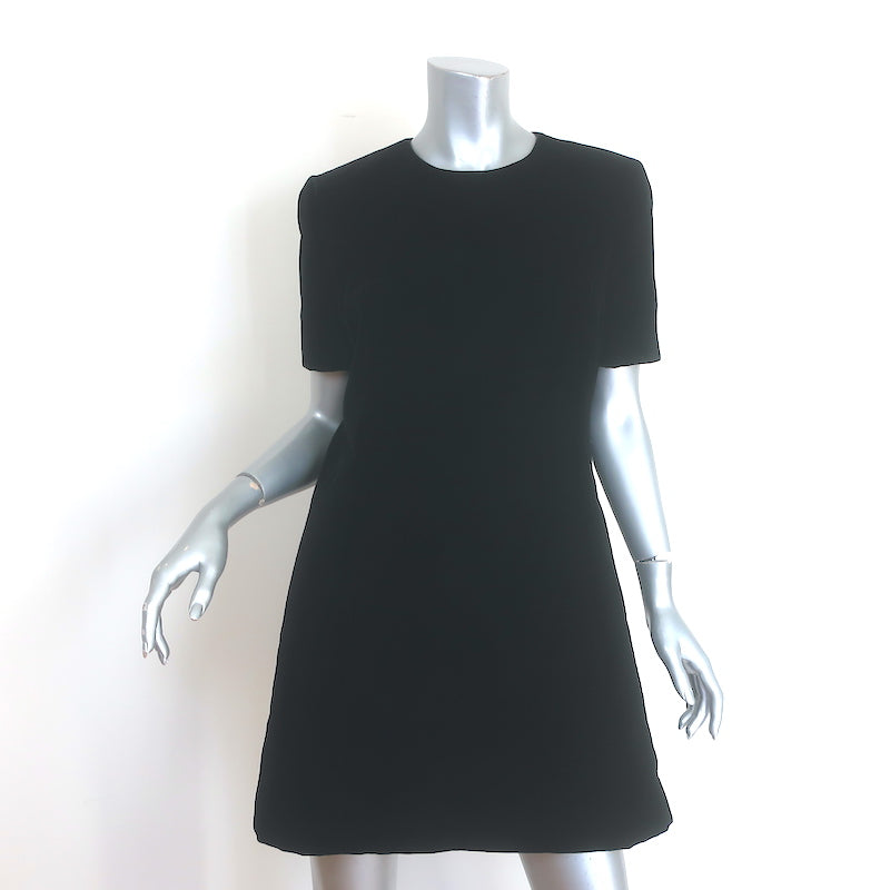 Saint Laurent Velvet Short Sleeve A-Line Mini Dress Black Size 42