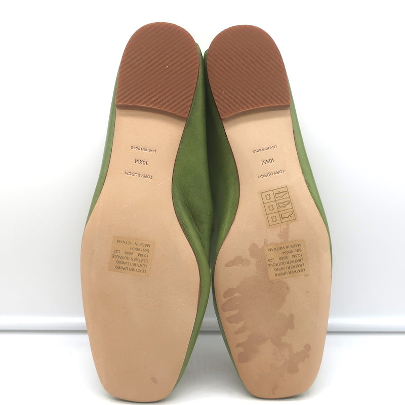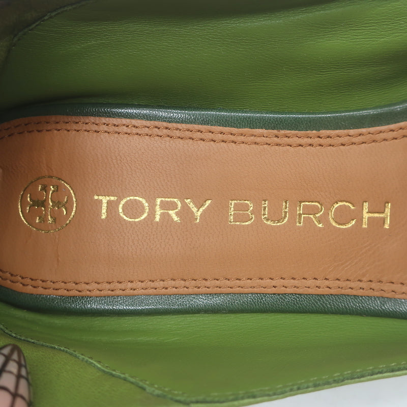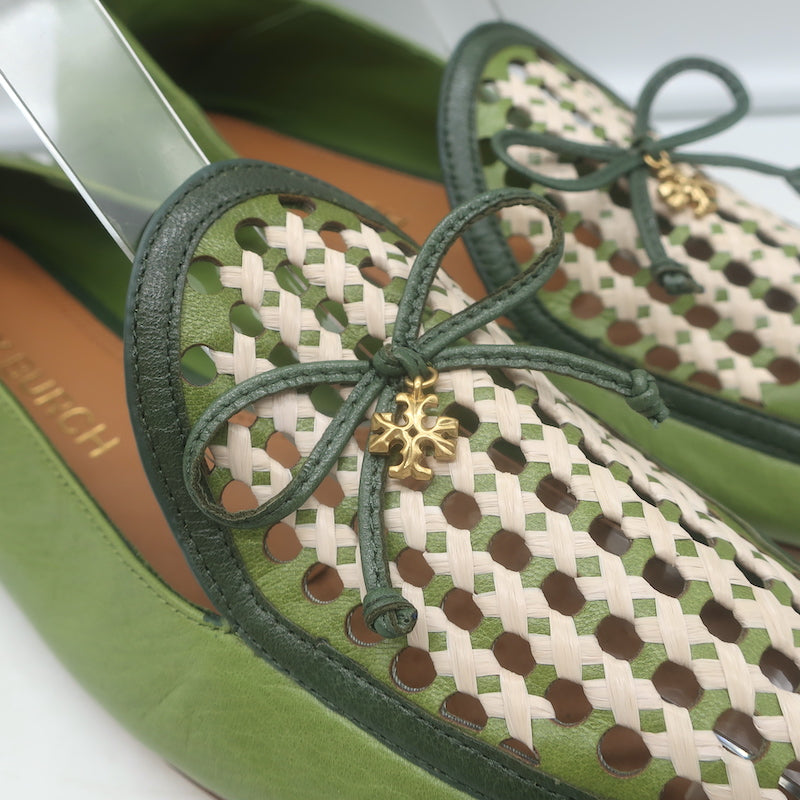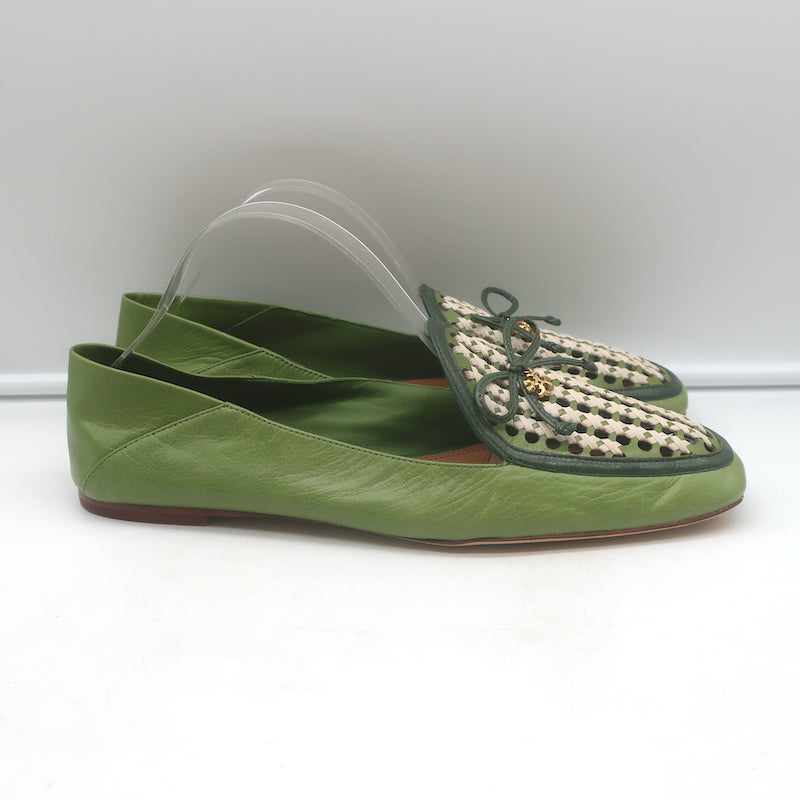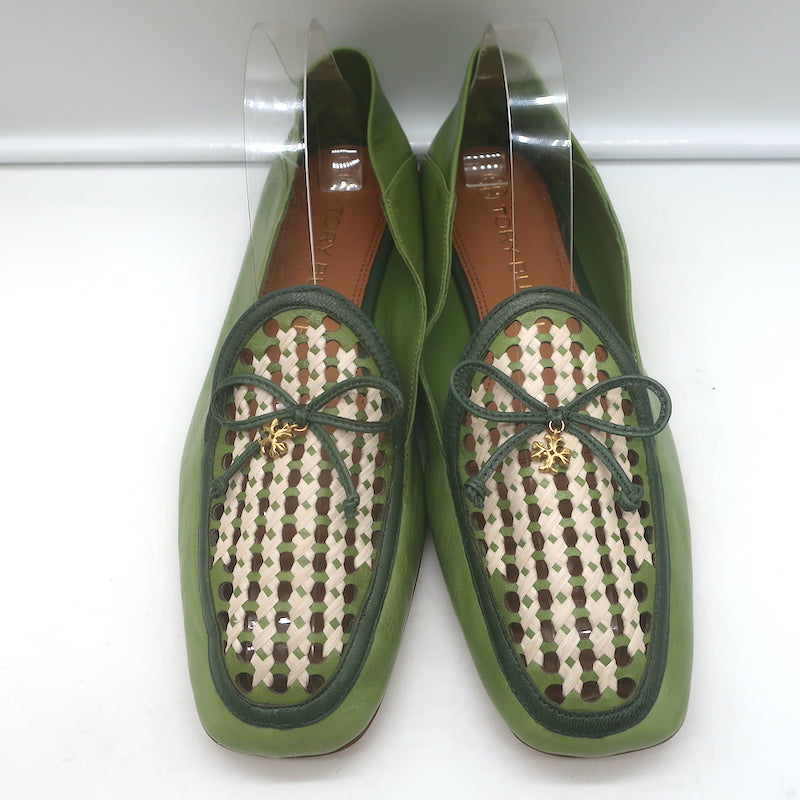 Tory Burch Charm Woven Loafers Green Leather Size 10.5 NEW