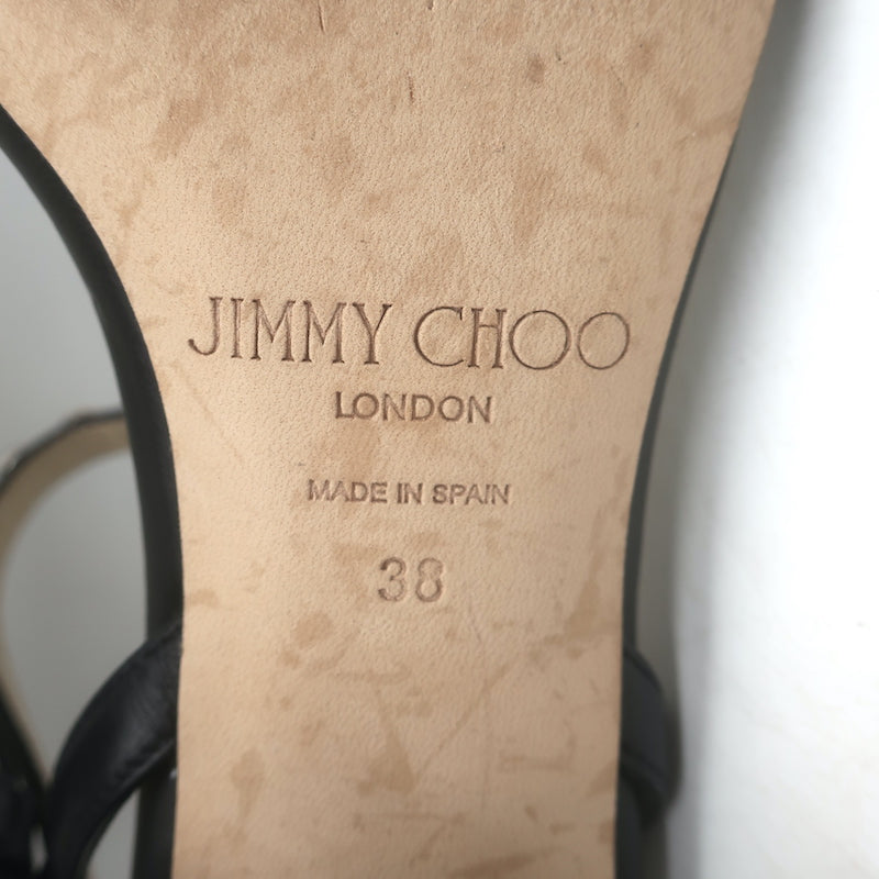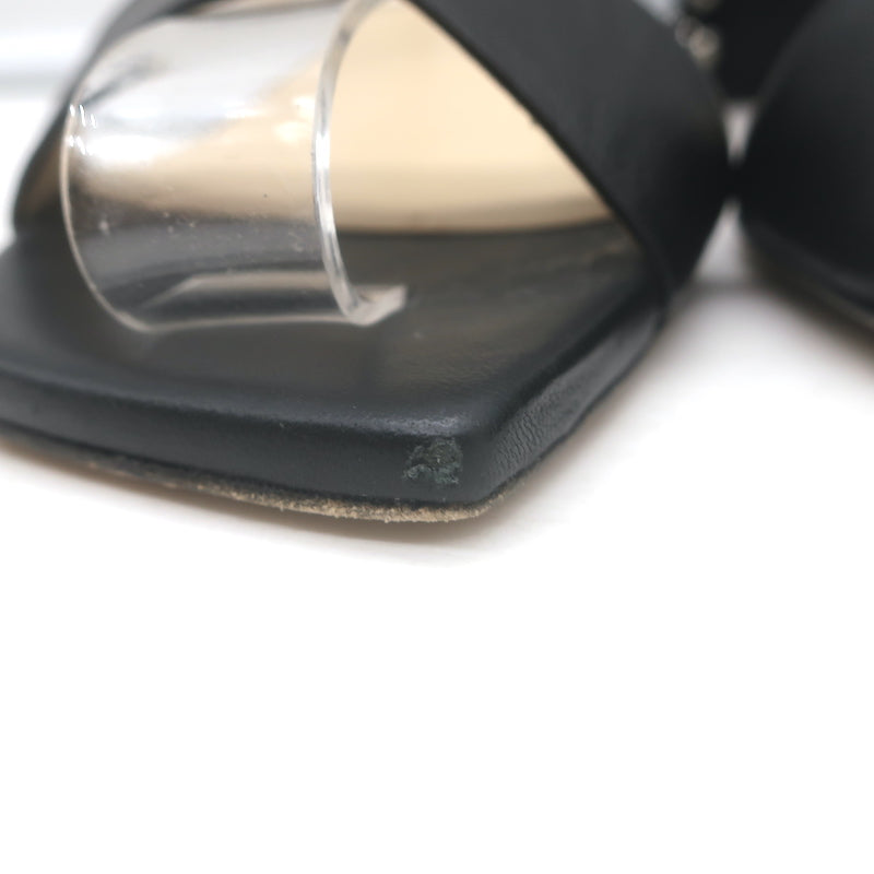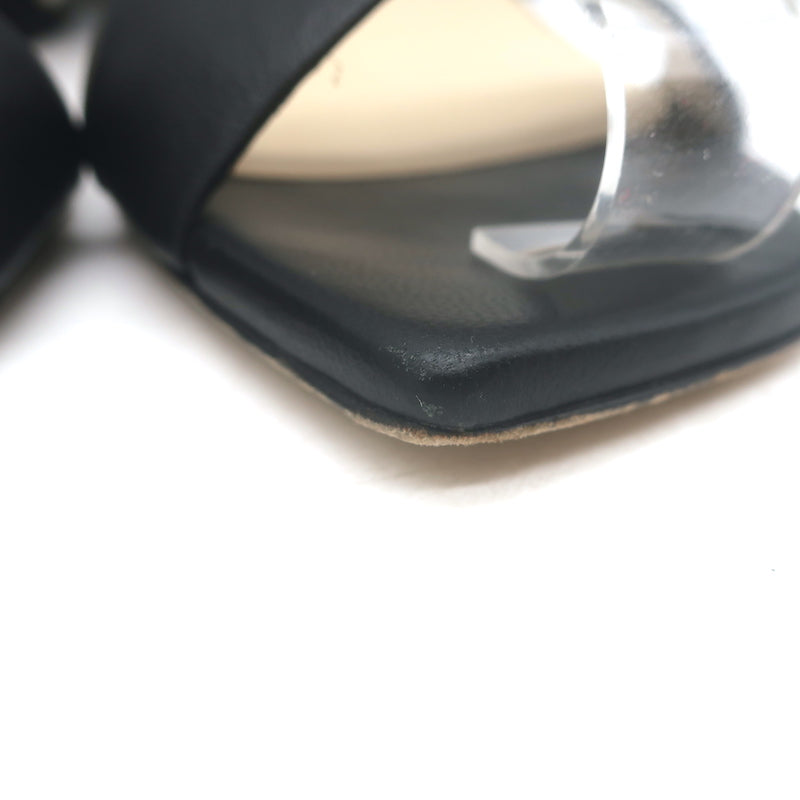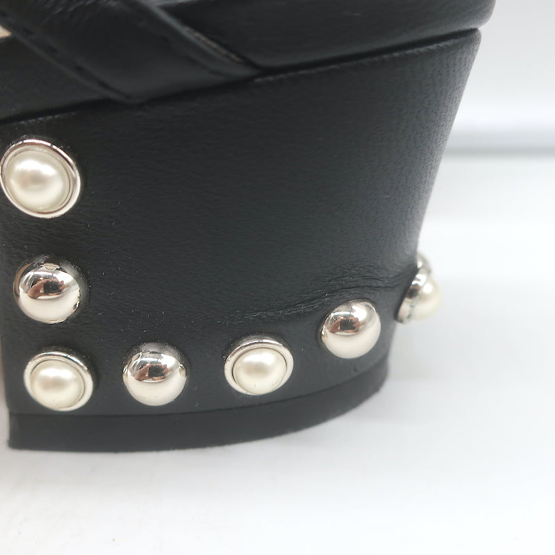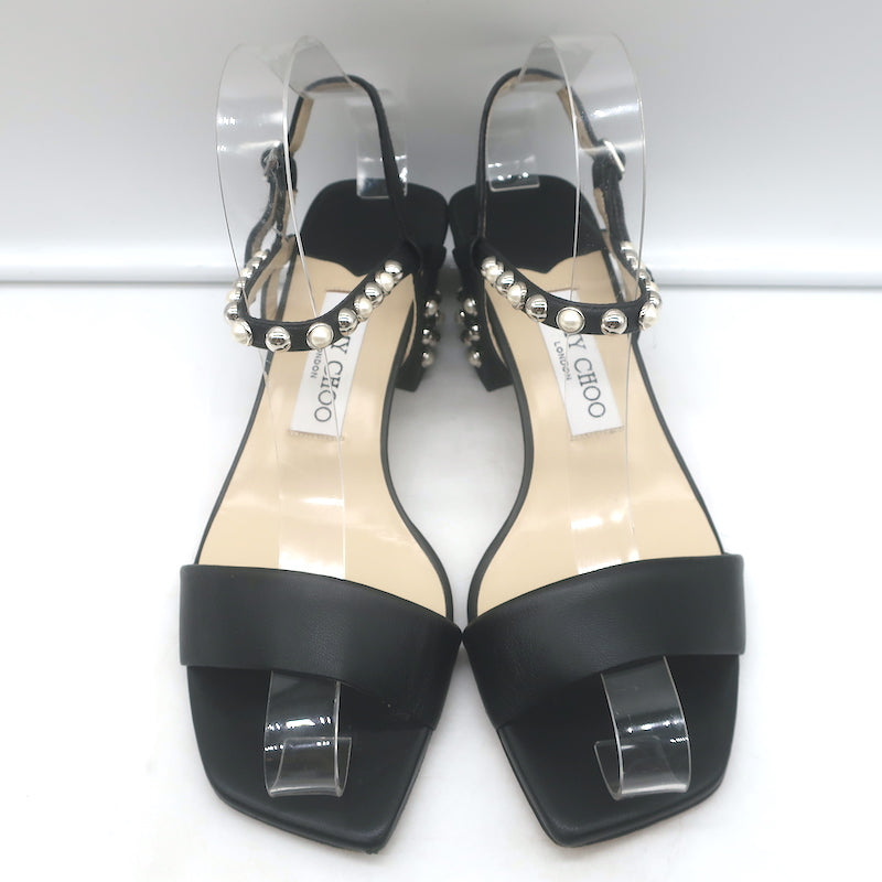 Jimmy Choo Aadra Faux Pearl-Studded Low Heel Sandals Black Leather Size 38