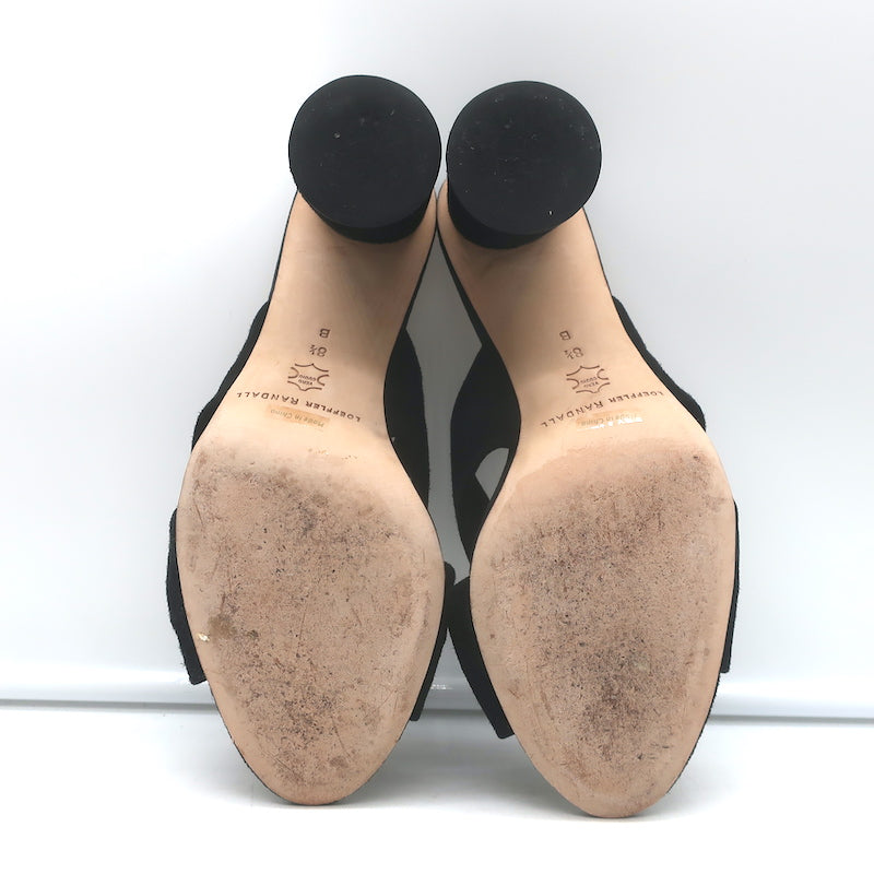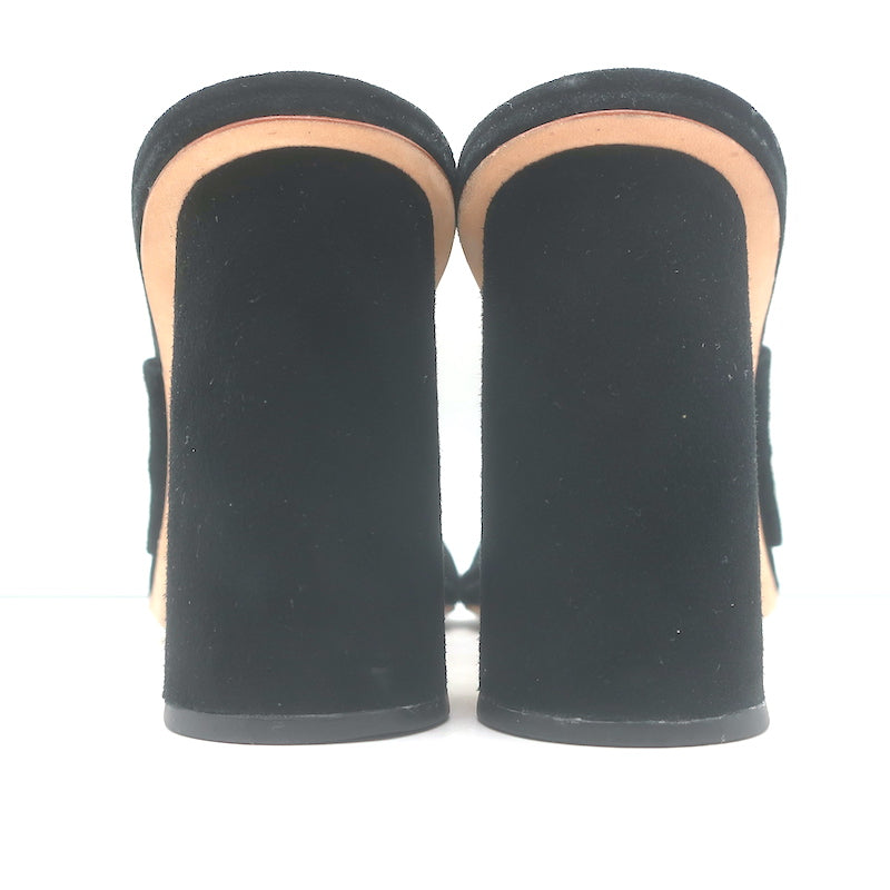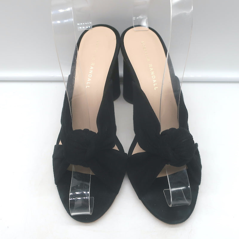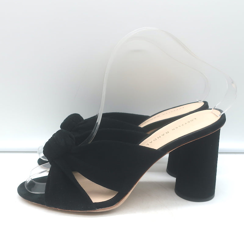 Loeffler Randall Coco Knotted Slide Sandals Black Suede Size 8.5 Open Toe Heels