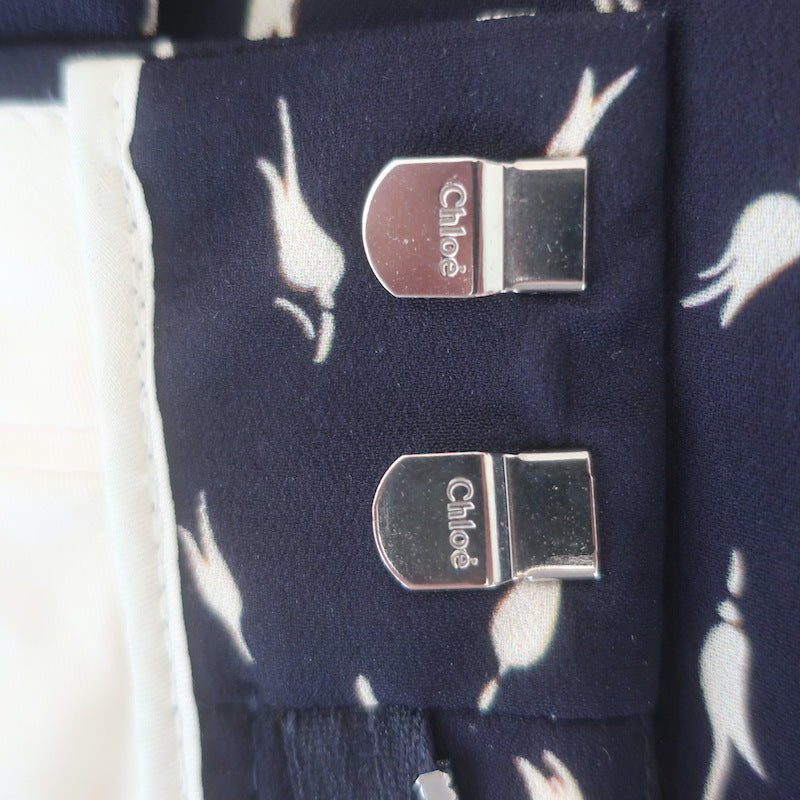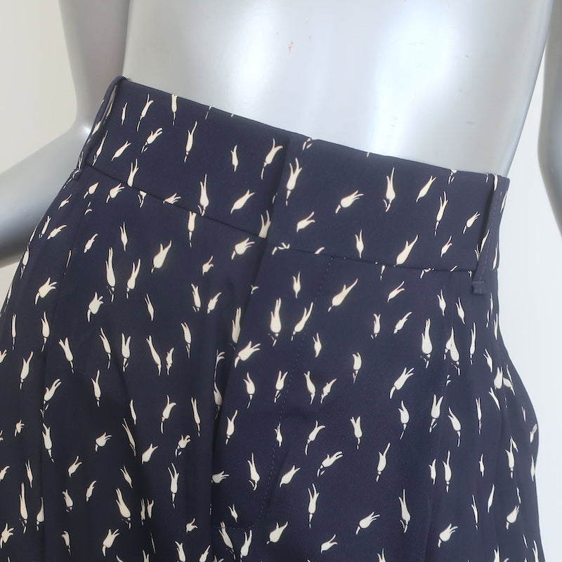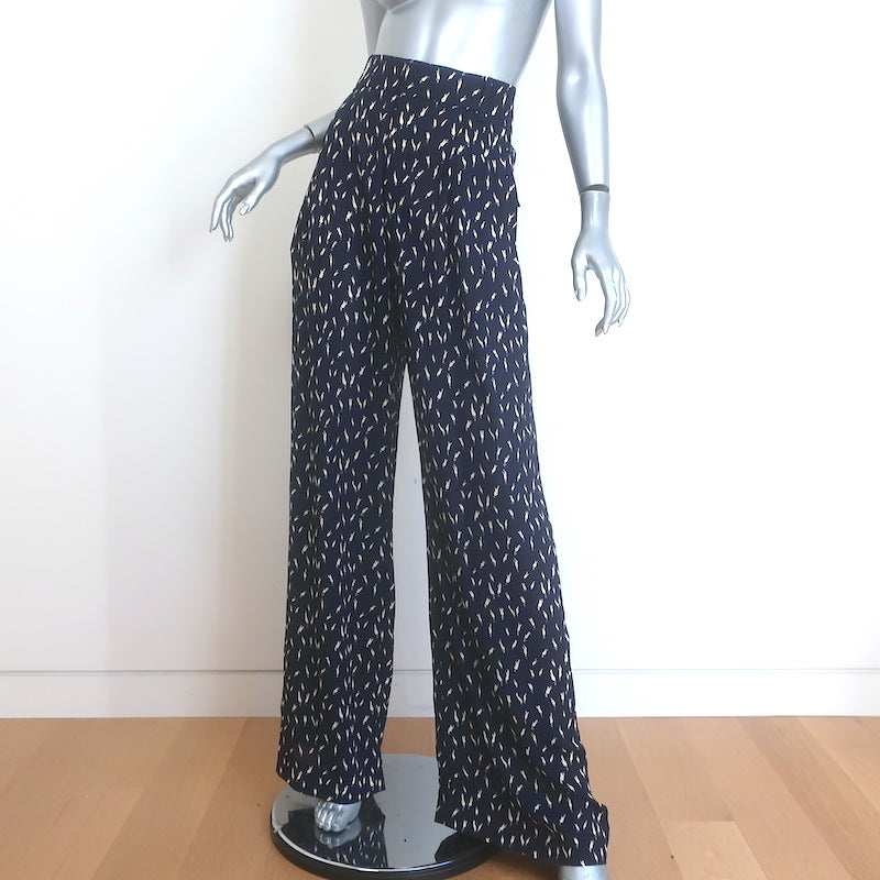 Chloe Wide Leg Pants Navy Micro Tulip Print Crepe Size 40 NEW
