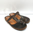 Pedro Garcia Crystal T-Strap Sandals Dark Brown Leather Size 37 Toe Ring Slides