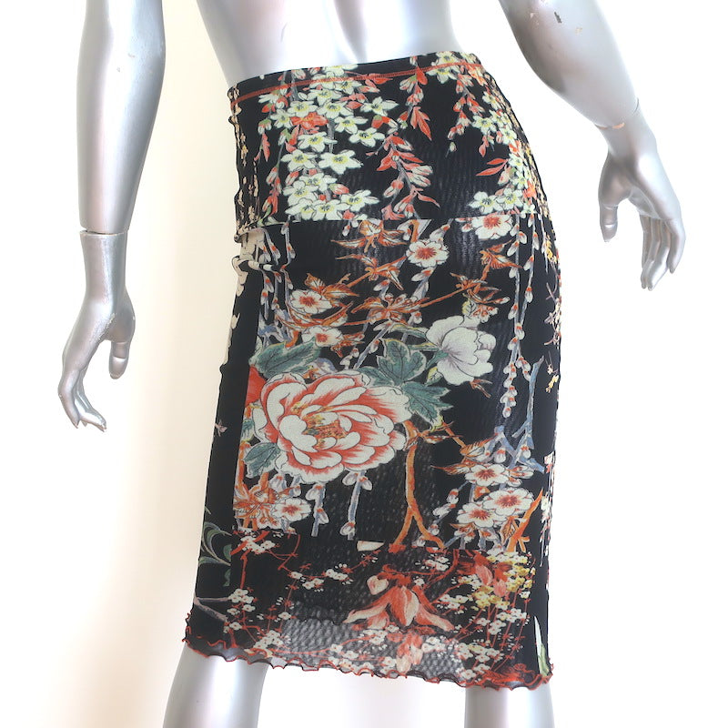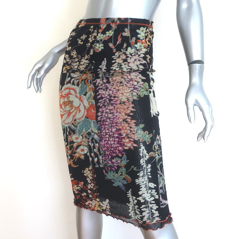 Etro Floral Print Mesh Midi Skirt Black Size 40