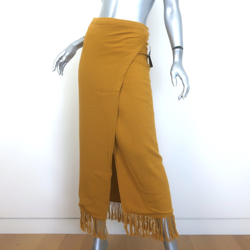 Savannah Morrow The Label Desert Fringed Midi Wrap Skirt Mustard Size XS/S NEW