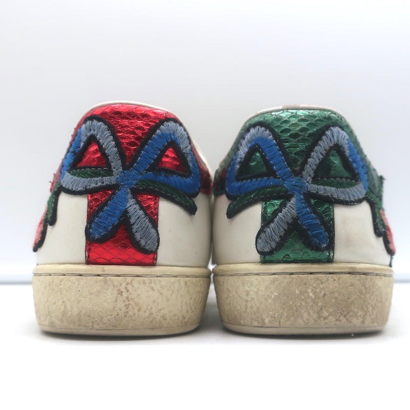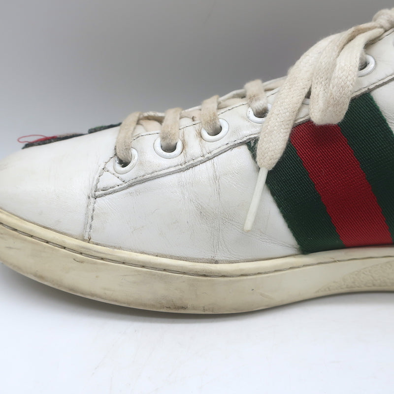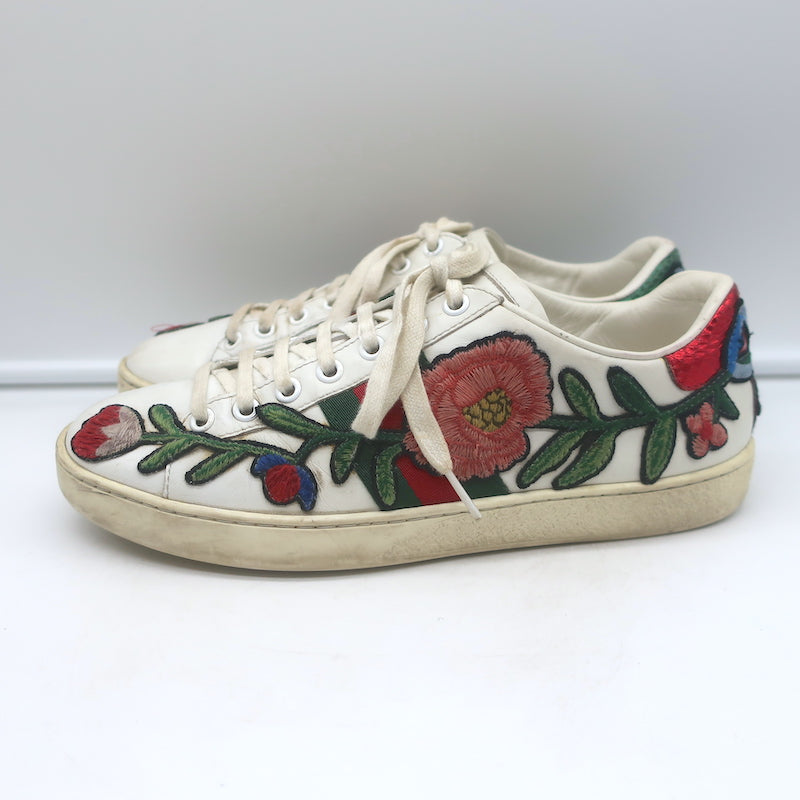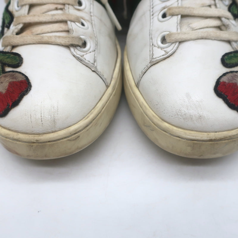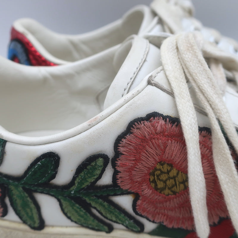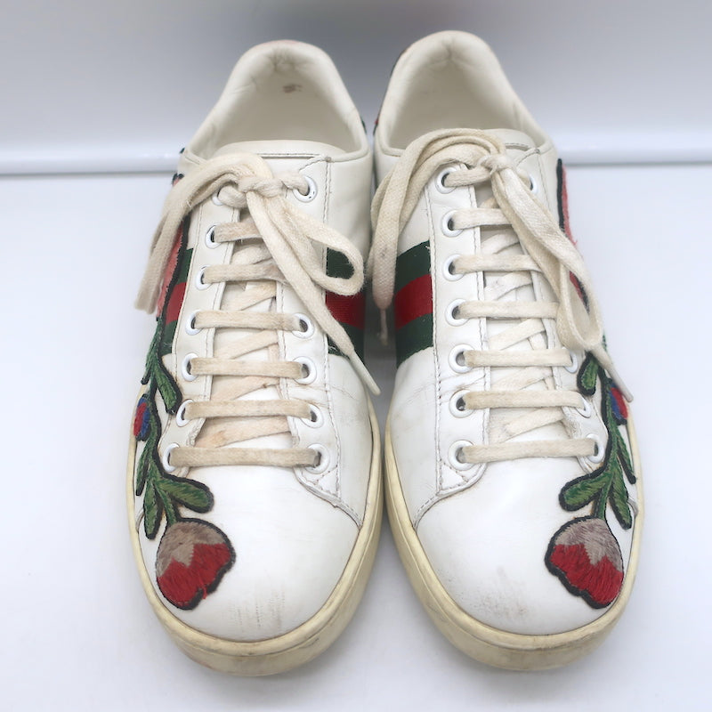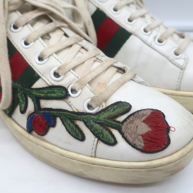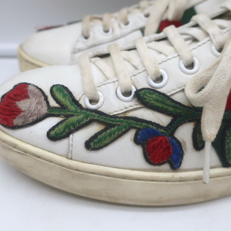 Gucci Ace Floral-Embroidered Low Top Sneakers White Leather Size 37