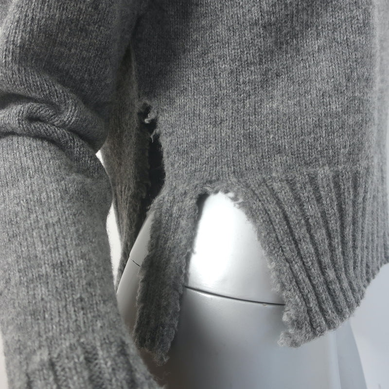 R13 Shredded Side Slit Sweater Charcoal Cotton-Blend Size Extra Small