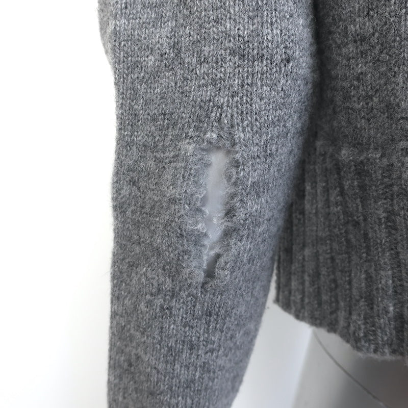 Celine Phoebe Philo Shredded Knit Crewneck Sweater Gray Wool Size Medium