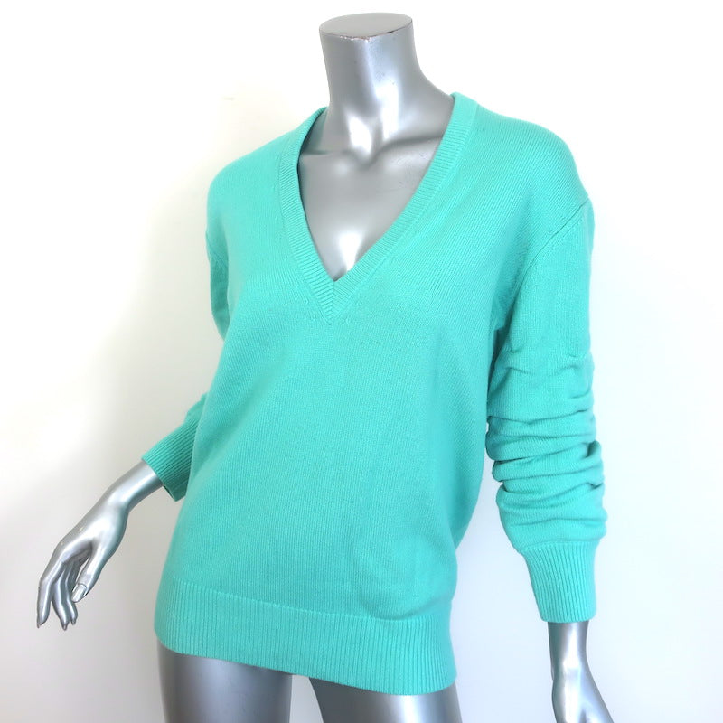 Michael Kors Collection Cashmere Ruched Sleeve V-Neck Sweater Seafoam Size Small