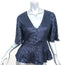 FRAME Deep V Ruffle Collar Top Navy Size Small Puff Sleeve Blouse