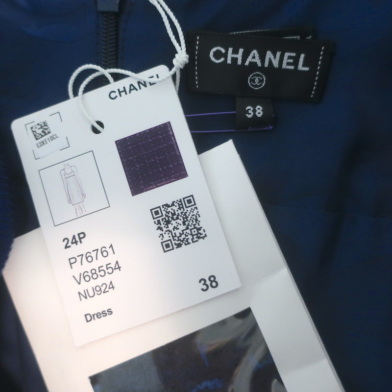 Chanel 24P Tweed Tank Dress Navy Wool-Blend Size 38 NEW