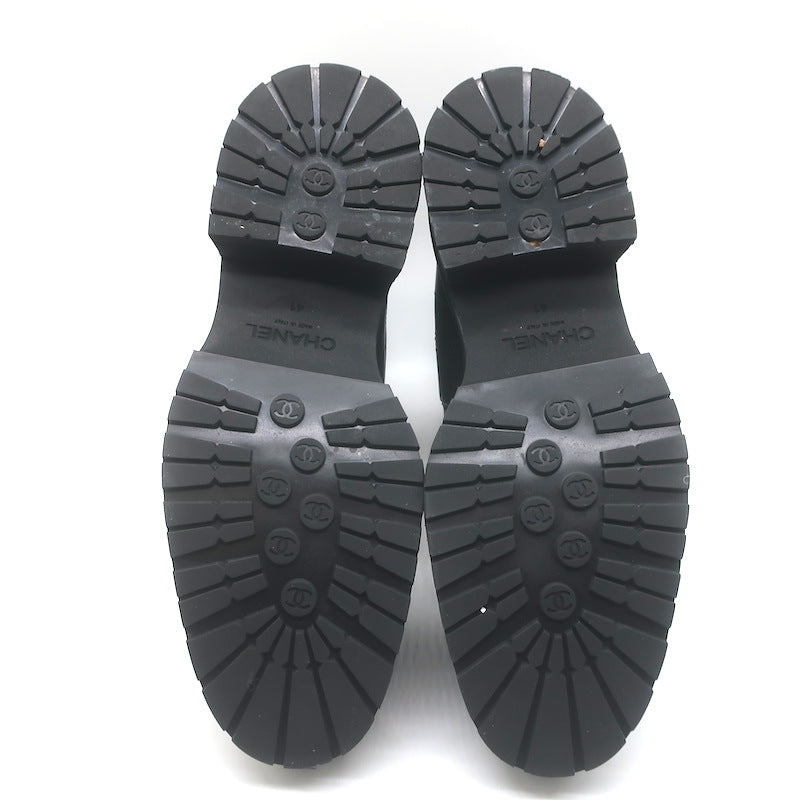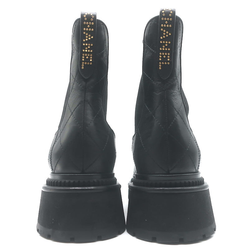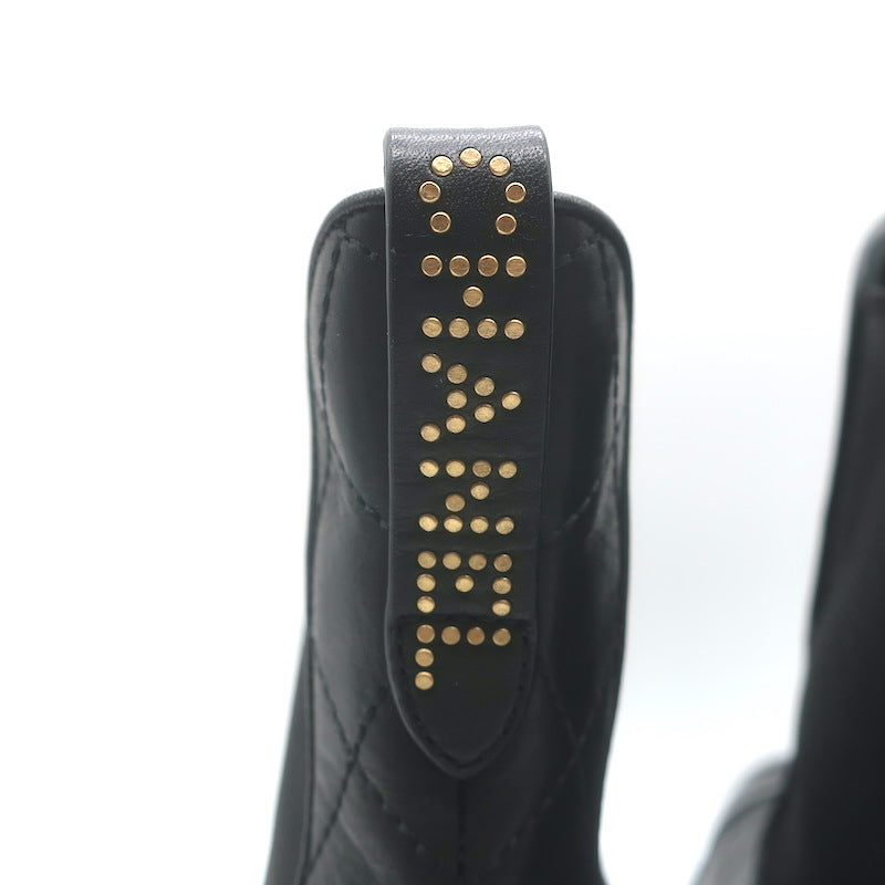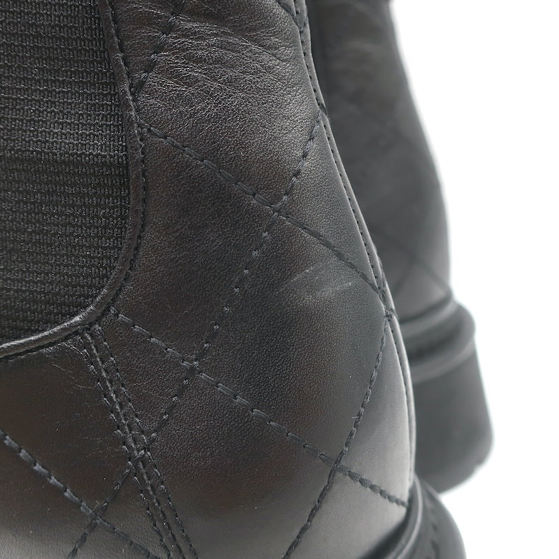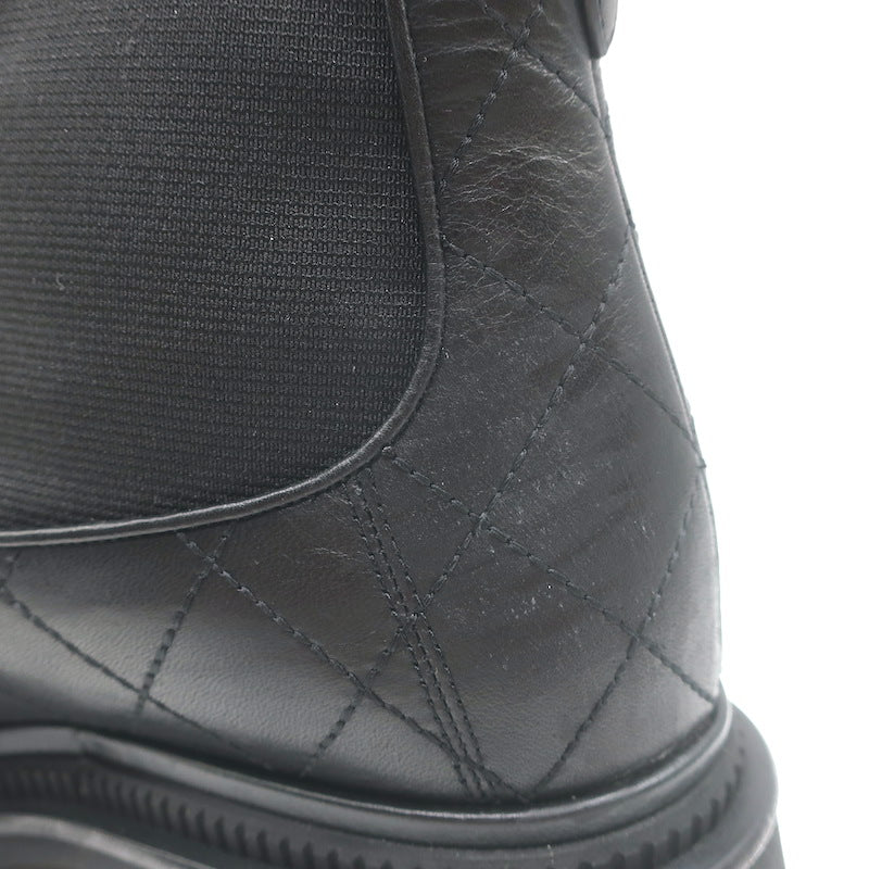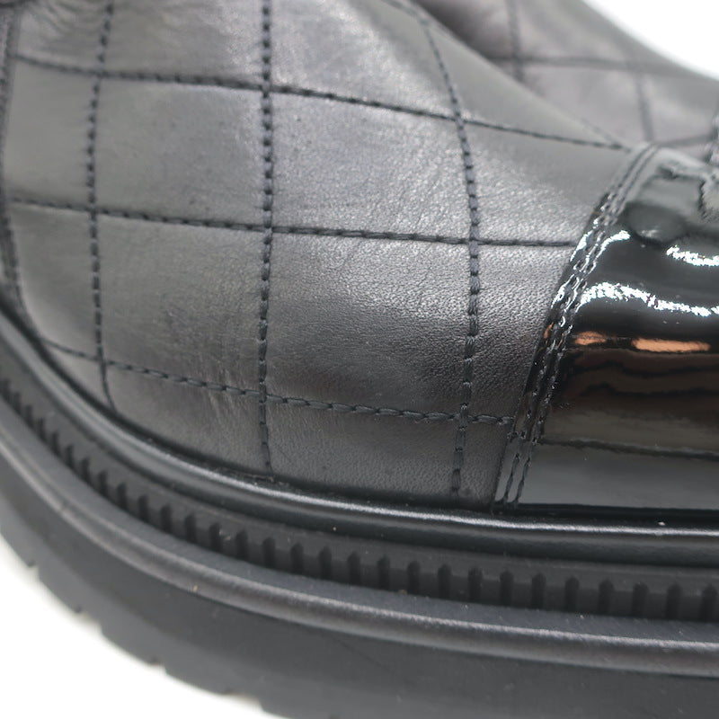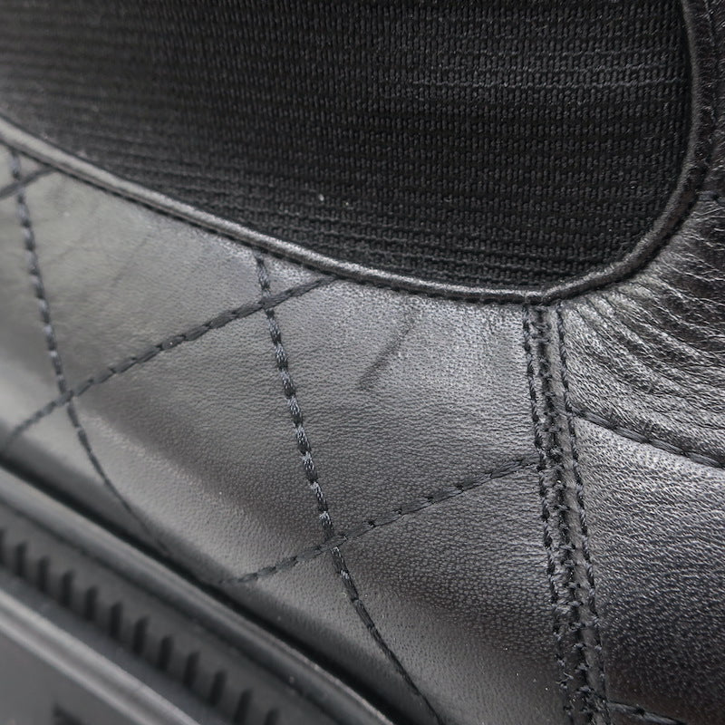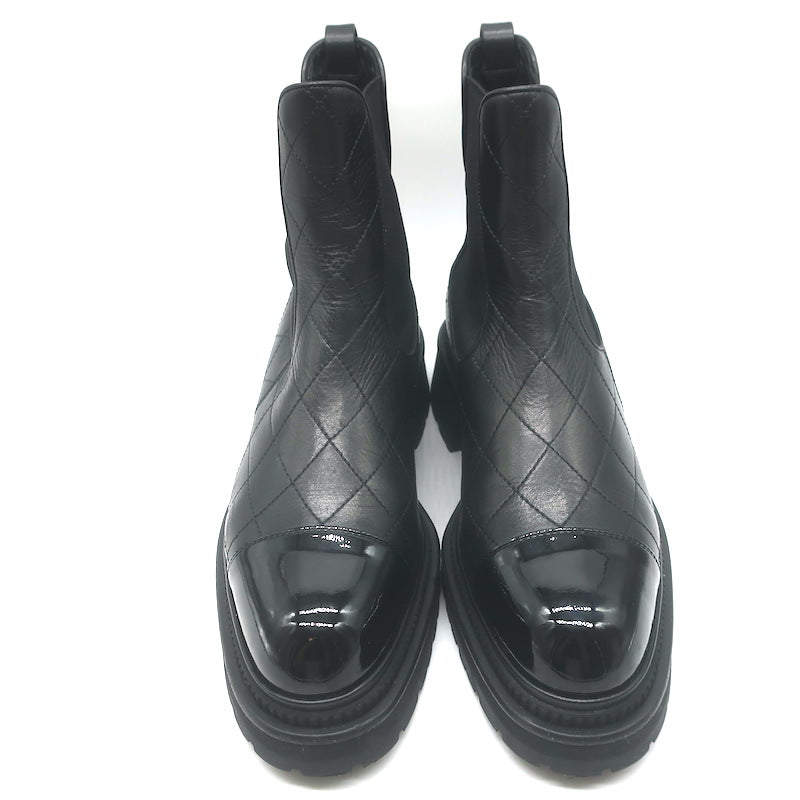 Chanel 26C Patent Cap Toe Quilted Leather Chelsea Boots Black Size 41