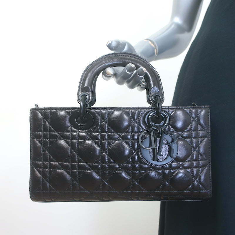 Christian Dior Lady D-Joy Bag Black Cannage Leather Medium Crossbody