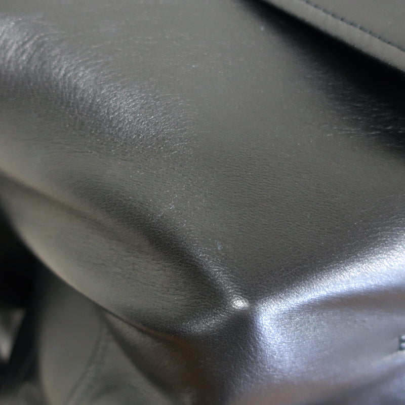 Pre-loved. Distressing and small smudges throughout body of bag. Wear along edges and on corners of bag. Comes with dust bag. Silver...