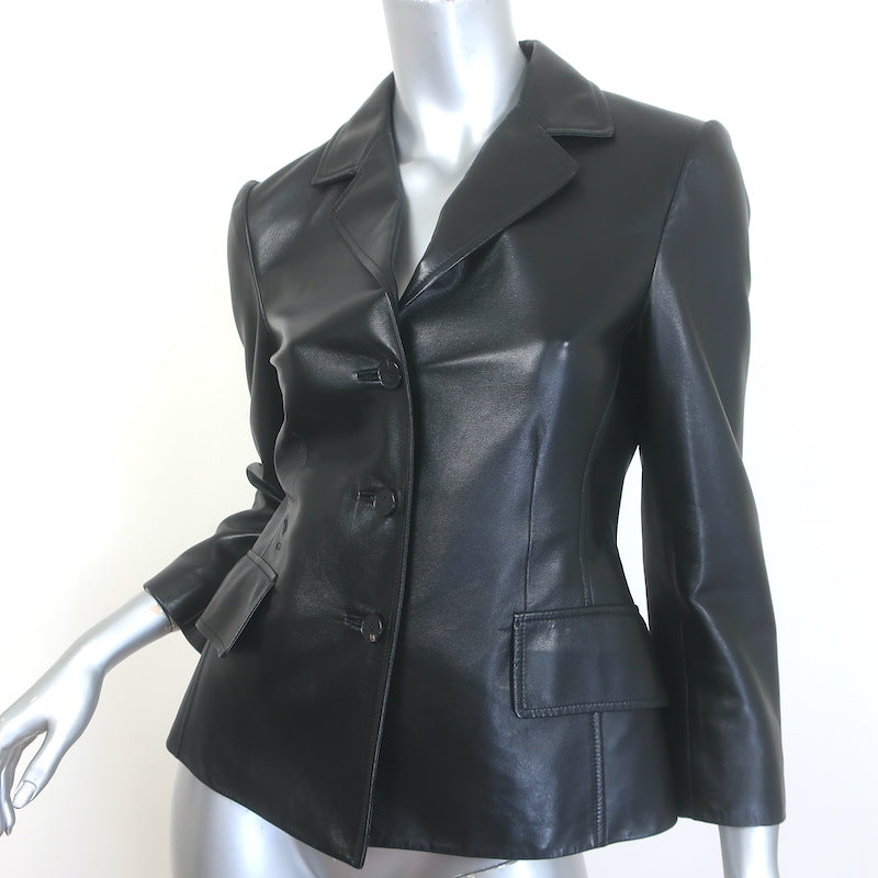 Christian Dior Lamb Leather Bar Jacket Black Size US 6 Single Breasted Blazer